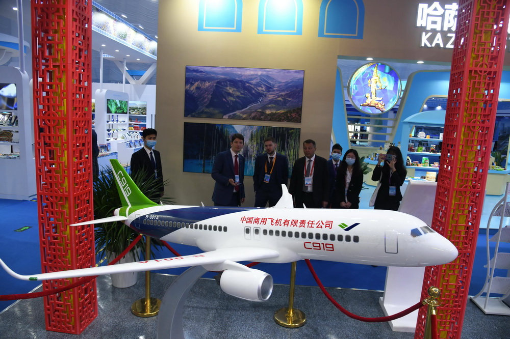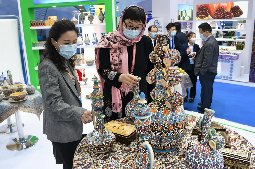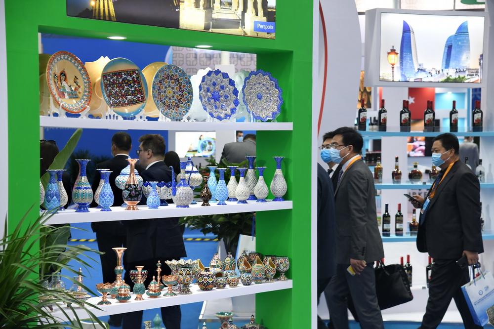 4月26日,为期3天的2021上海合作组织国际投资贸易博览会暨上海合作组织地方经贸合作青岛论坛在青岛开幕。博览会主要包括开幕式、青岛论坛、上海合作组织国家驻华使节推介暨企业投资贸易洽谈会等板块。新华社记者 李紫恒 摄