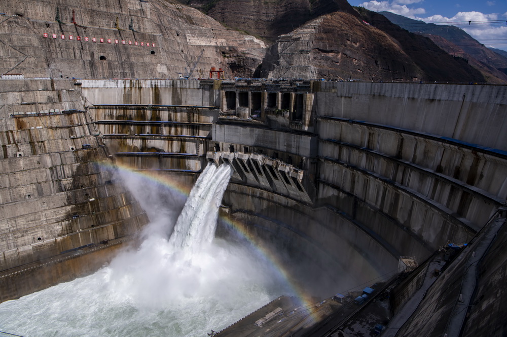 目前,金沙江白鹤滩水电站建设进入冲刺阶段,库区水位已蓄至752.5米,首批发电机组引水管道已充水,计划5月25日水位蓄至765米;全部16台机组机电安装作业正在有序进行;大坝混凝土浇筑完成785.4万方,24个坝段到顶,计划5月底全部坝段到顶;地下厂房正在进行装修施工。