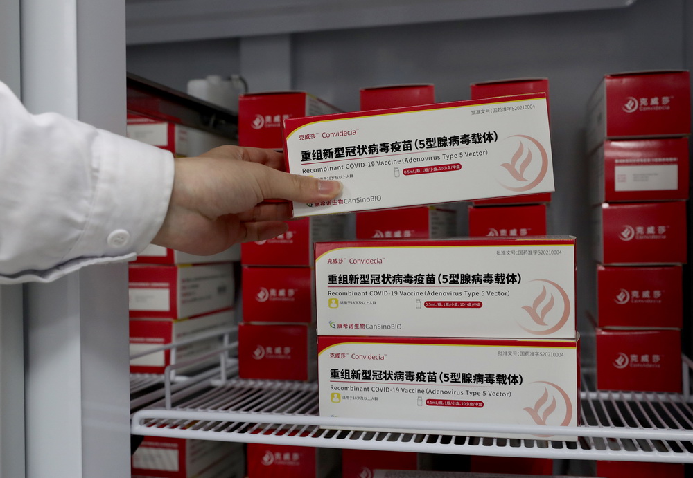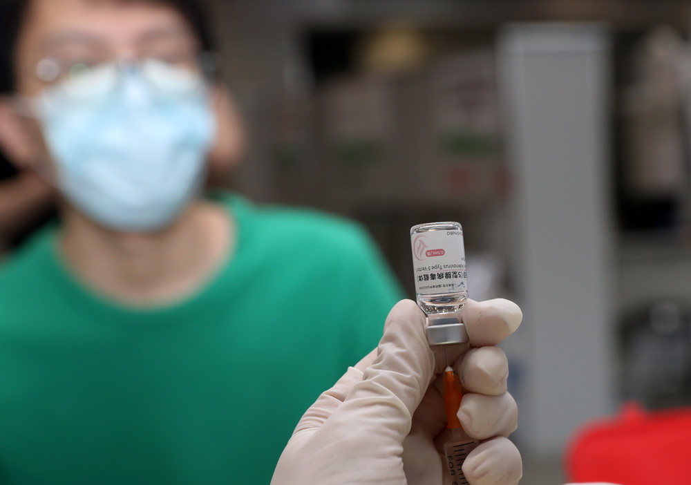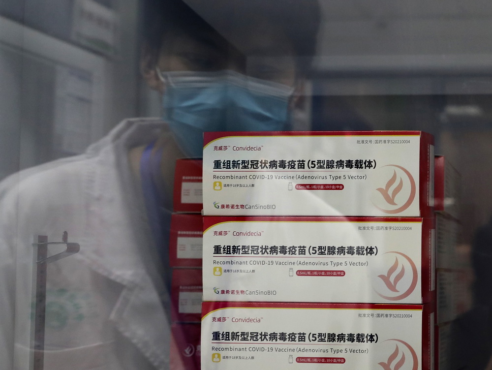 近日,全程只需一针的新冠疫苗在上海多个区的接种点陆续开打。据上海市疾病预防控制中心介绍,不同种类的疫苗由于研发技术路线和生产工艺不同,所需接种剂次也就不同。与之前上海使用的三种新冠病毒灭活疫苗相比,康希诺公司生产的重组新冠病毒疫苗(5型腺病毒载体)采用的生产技术完全不同。这两类疫苗的接种方式和接种年龄范围相同。从临床试验研究的结果和紧急使用的研究结果、上市后监测的结果来看,包括腺病毒载体疫苗和灭活疫苗在内的已经附条件获批上市的新冠疫苗,均具有良好的安全性。新华社记者 刘颖 摄
