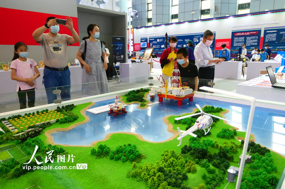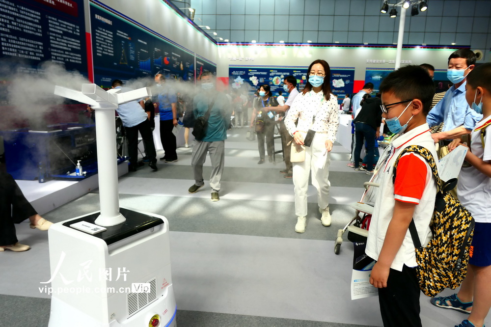 2021年5月22日,2021年全国科技活动周暨北京科技周在中关村国家自主创新示范区展示中心开幕。科技周主场室内外约5000平方米展区共展出150余个展项,为市民带来一场科技盛宴。贺路启摄(人民图片网)
