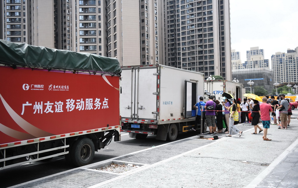 目前,广州启动管控重点区域应急响应,尽全力做好严格管控重点区域内生活必需品供应保障,确保群众生活必需品不停供、不断档、不脱销。新华社记者 邓华 摄