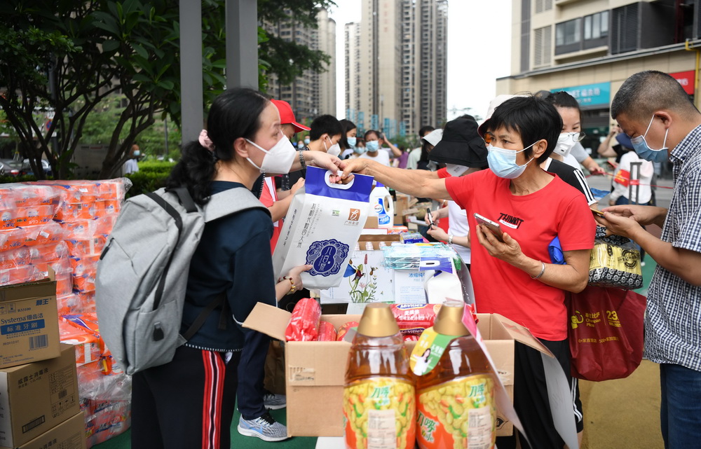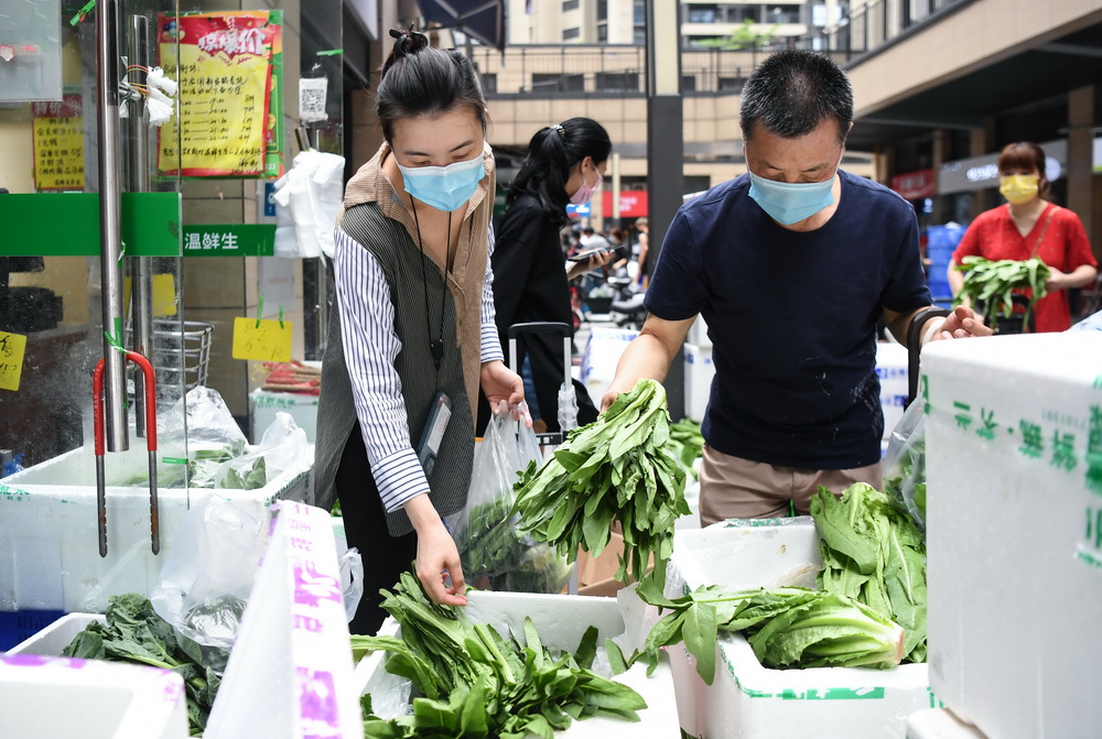 5月30日,记者在纳入严格管控范围的广州荔湾区白鹤洞街道广钢新城看到,群众生活必需品供应保障充足,物价平稳,居民生活有序。