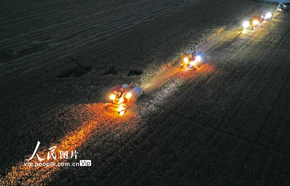 地处洪泽湖西畔的江苏省宿迁市泗洪县是著名的产粮大县,全县共种植小麦137万亩。进入5月下旬以来,该县干群抓住天气晴好时机,积极组织人力、机械昼夜抢收成熟的小麦,确保粮食颗粒归仓。许昌亮摄(人民图片网)