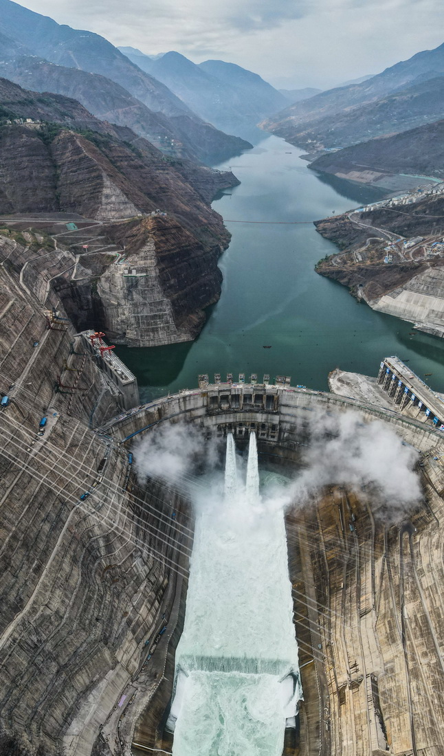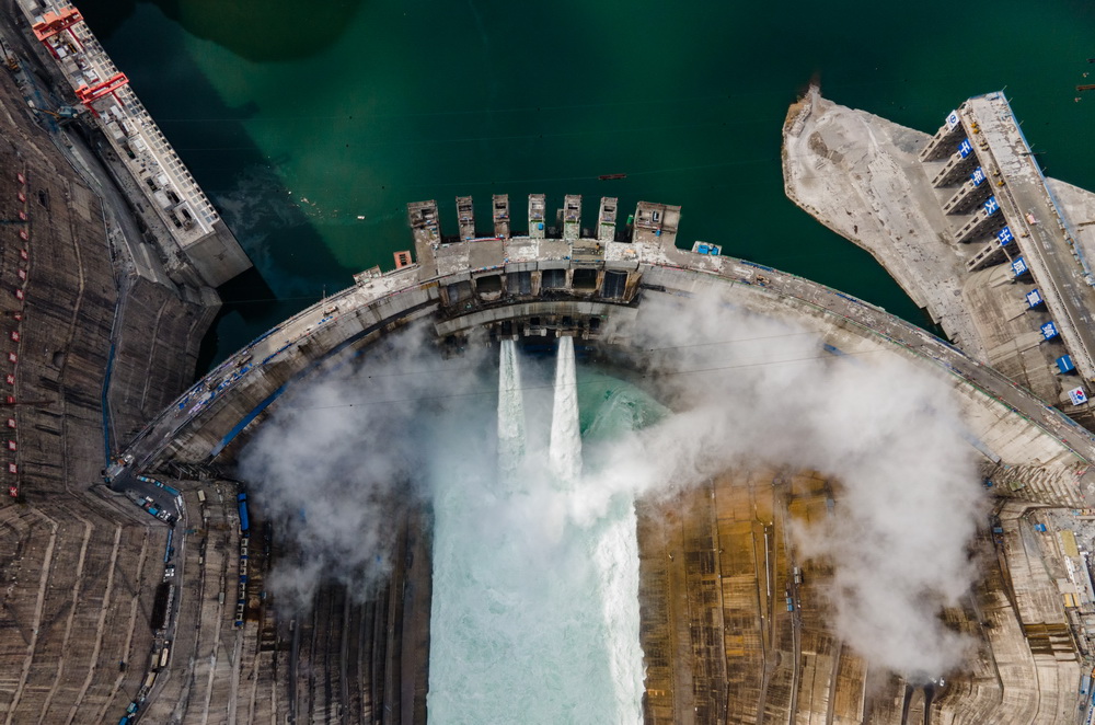 5月31,白鹤滩水电站大坝实现全线浇筑到顶,工程建设进入冲刺阶段。位于四川省宁南县和云南省巧家县交界处金沙江干流下游河段上的白鹤滩水电站,是开发和治理长江上游的重要水电工程,是国家能源战略布局“西电东送”的骨干电源点,也是长江防洪体系的重要组成部分。电站总装机容量1600万千瓦,计划于2021年7月首批机组投产发电,2022年7月全部机组投产发电。新华社记者 王冠森 摄