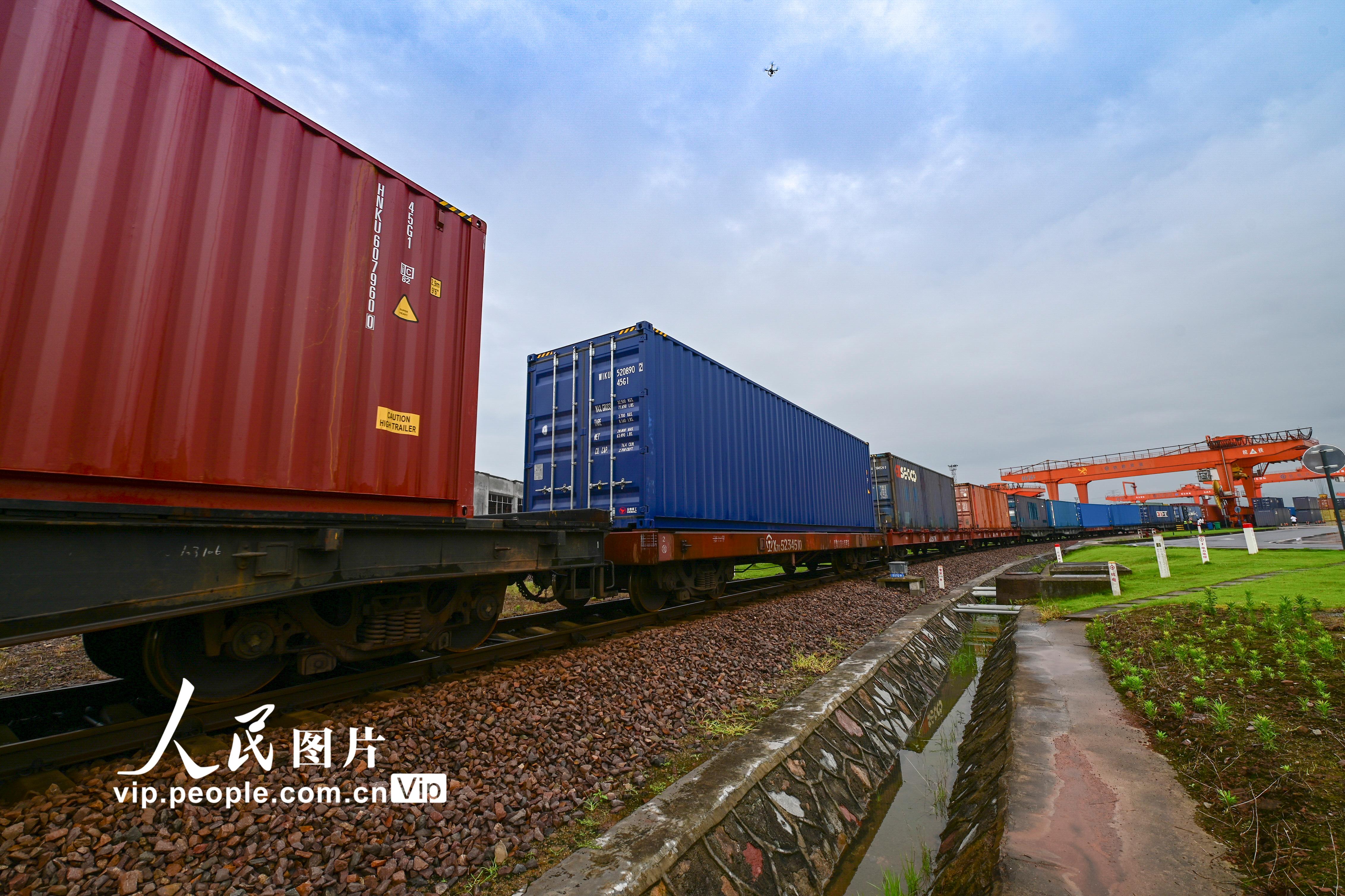 这趟新线路新班列,满载机器零配件、电子产品、日用百货等出口物品,总重量约554吨,货值约2100万元,将从阿拉山口出境,途经波兰、捷克等国家,历时约18天后抵达匈牙利首都布达佩斯。胡肖飞摄(人民图片网)