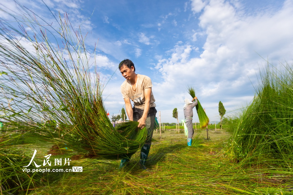 宁波是中国草席之乡,种植数量达万亩之多。每年5月底到7月初,大批农民工纷纷来到浙江省宁波市收割蔺草,帮助当地解决用工慌的同时,也给自己增加收入。董小飞摄(人民图片网)
