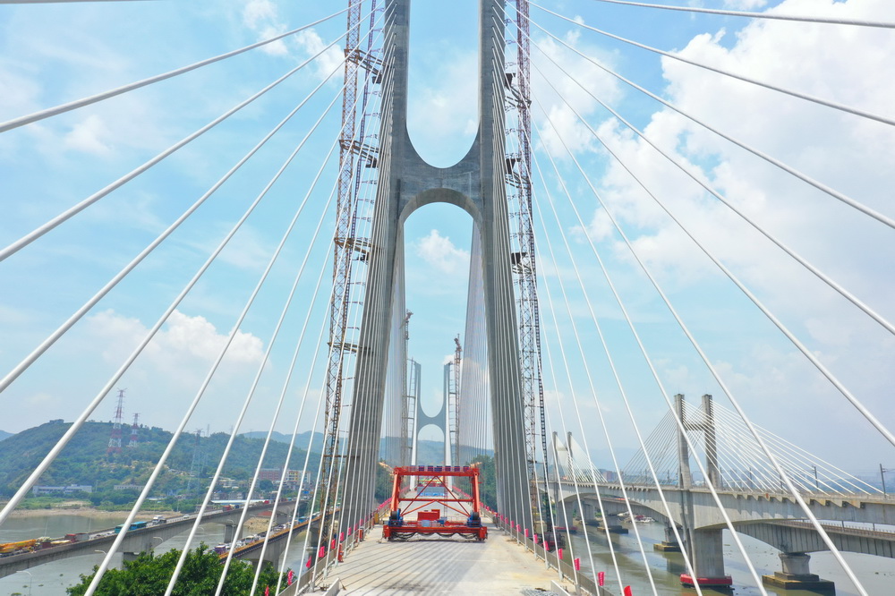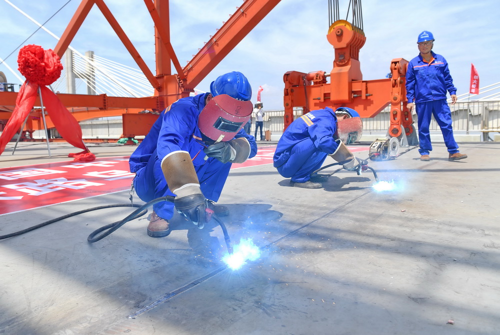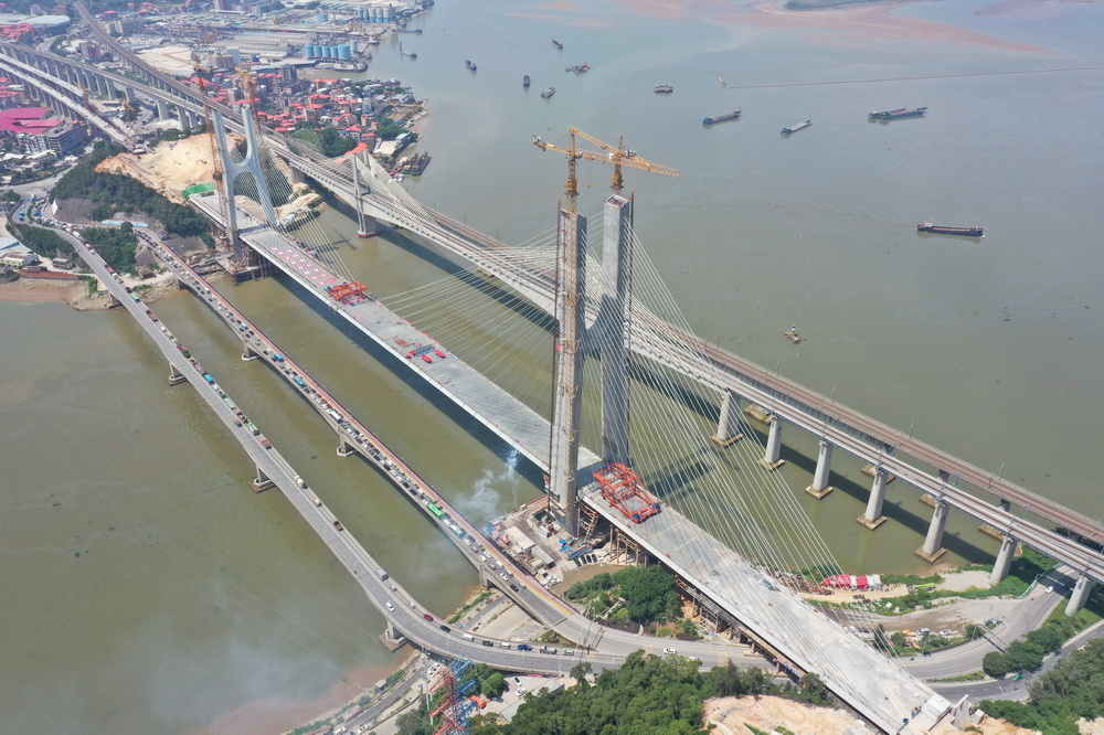 6月17日,由中国中铁大桥局承建的新建福厦铁路乌龙江大桥举行合龙仪式。新建福厦铁路乌龙江大桥是一座四线高低塔双索面混合梁斜拉桥,是新建福厦铁路全线重点控制性工程。大桥全长739.9米、主跨432米。