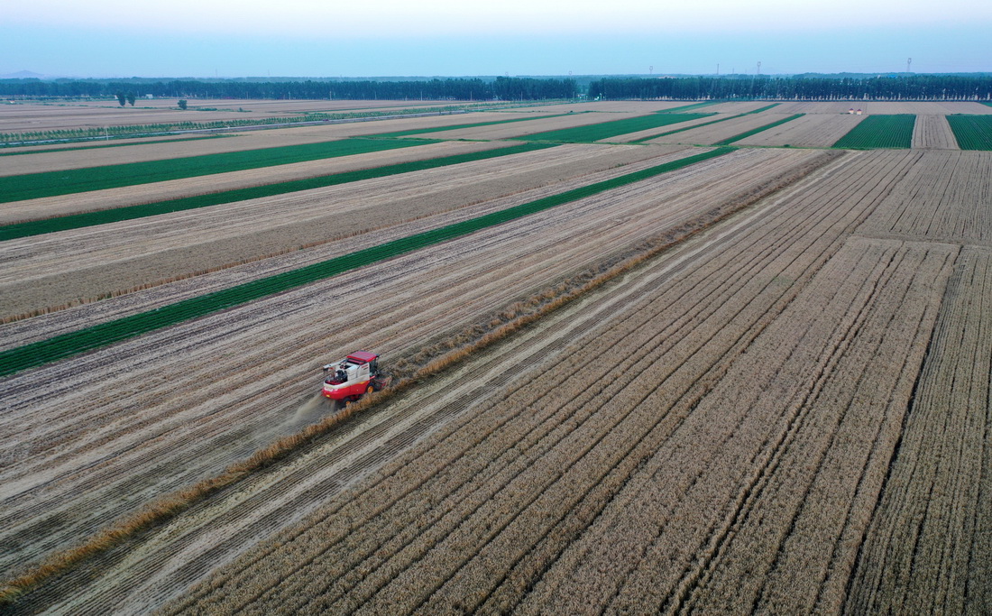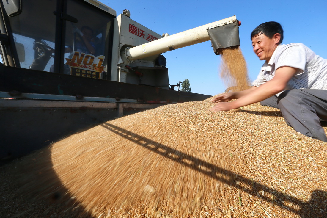 近日,山东省青岛市即墨区的小麦陆续开镰收割,农民利用晴好天气加紧收获小麦,确保颗粒归仓。据山东省农业农村厅统计,截至6月19日17时,我国第二大小麦主产区山东省已收获小麦5224.7万亩,占应收面积的87.3%,已近九成。新华社发(梁孝鹏 摄)