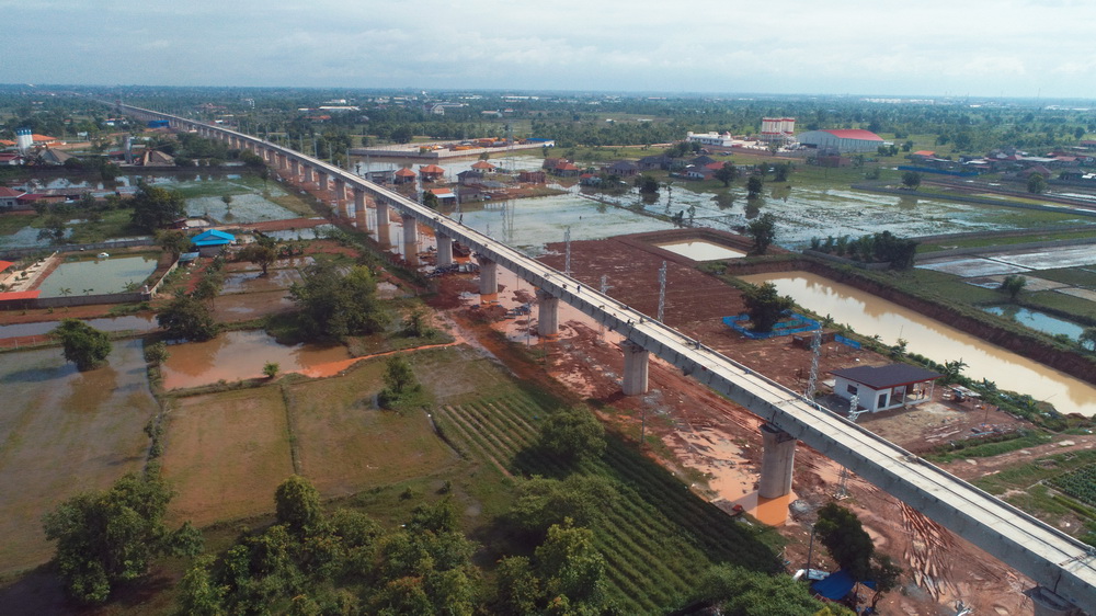 记者16日从中国中铁五局了解到,由其承建的中老铁路最长桥梁蓬通特大桥主体施工日前完成。新华社发(中铁五局供图)