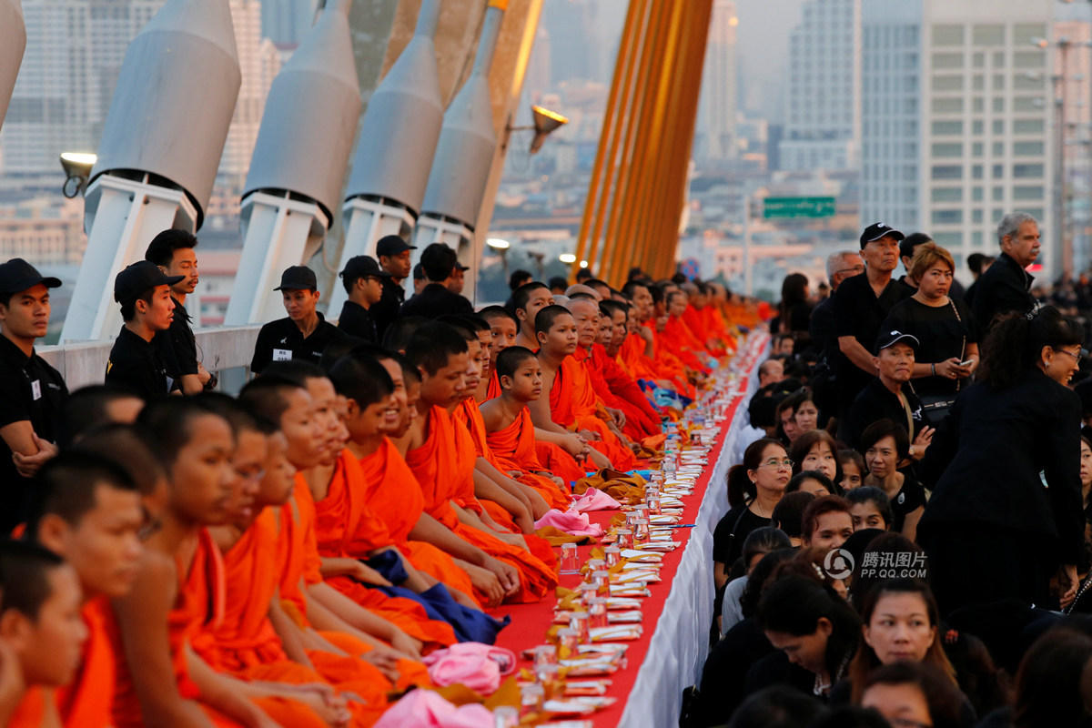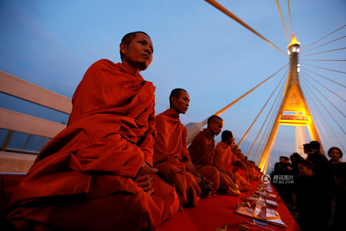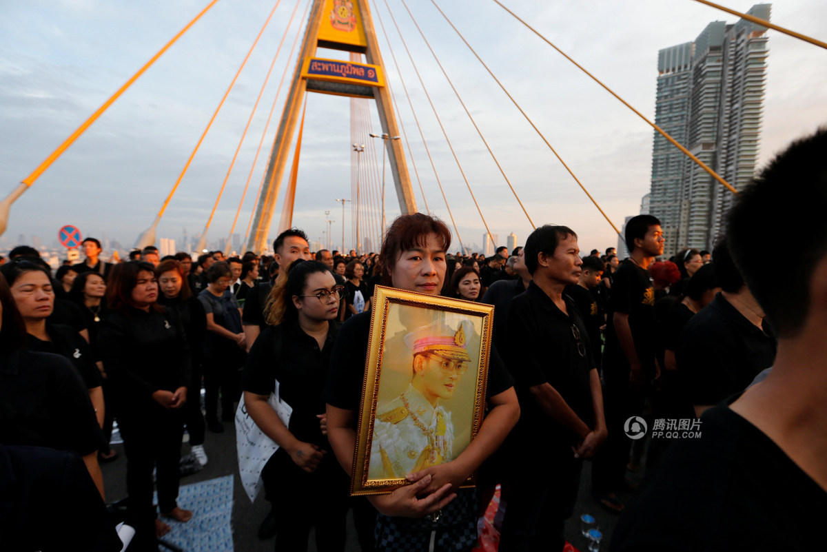 民众聚集在普密蓬一号大桥纪念普密蓬国王诞辰。