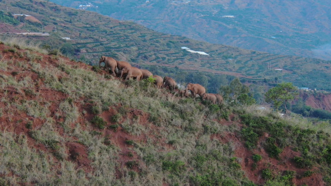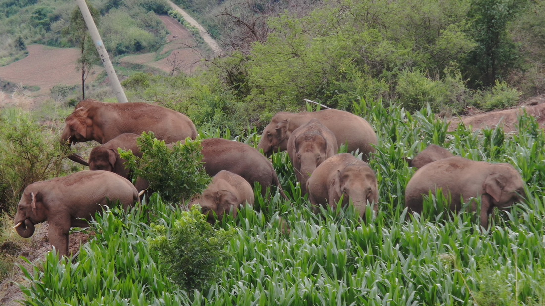 记者从云南北移亚洲象群安全防范工作省级指挥部了解到,6月19日18时至6月20日18时,北移象群动态整体平稳,持续在玉溪市峨山县大龙潭乡280米范围内迂回移动。独象从安宁市返回晋宁区,在晋宁区双河乡附近林地内活动,距离象群24.3公里。15头北移亚洲象均在监测范围内,人象平安。新华社发(云南省森林消防总队供图)