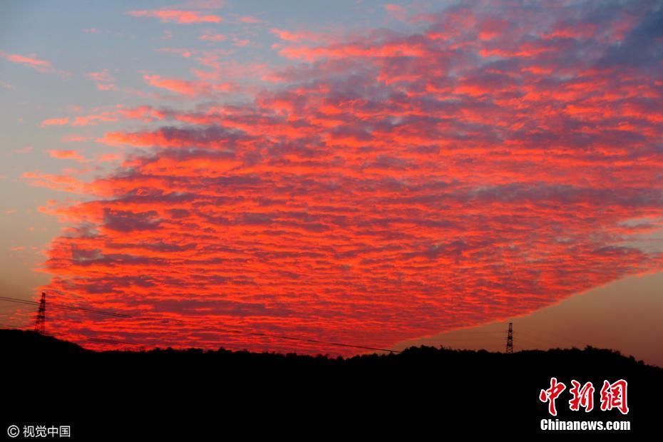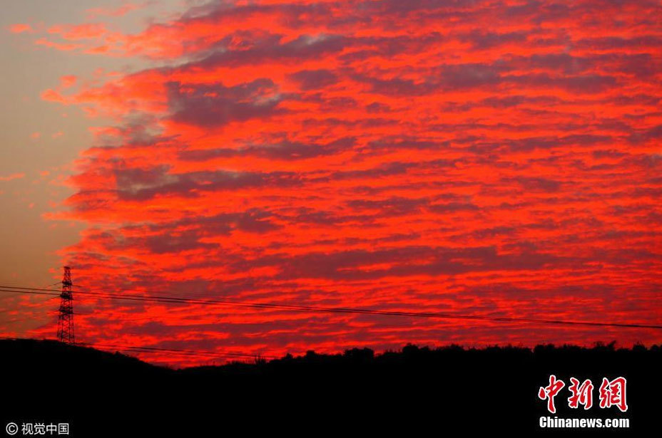 唯美绚“火烧云”映红天际,令人叹为观止。
