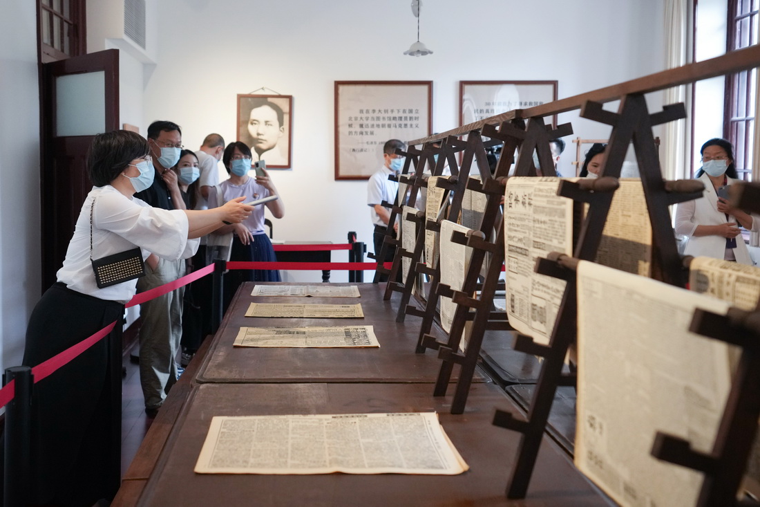 修缮后的北大红楼旧址6月29日起重新向公众开放,“光辉伟业 红色序章——北大红楼与中国共产党早期北京革命活动”主题展览也于同日亮相,丰富的图片、文物带领观众追寻红色起点,传承红色血脉,汲取前行力量。新华社记者 鞠焕宗 摄
