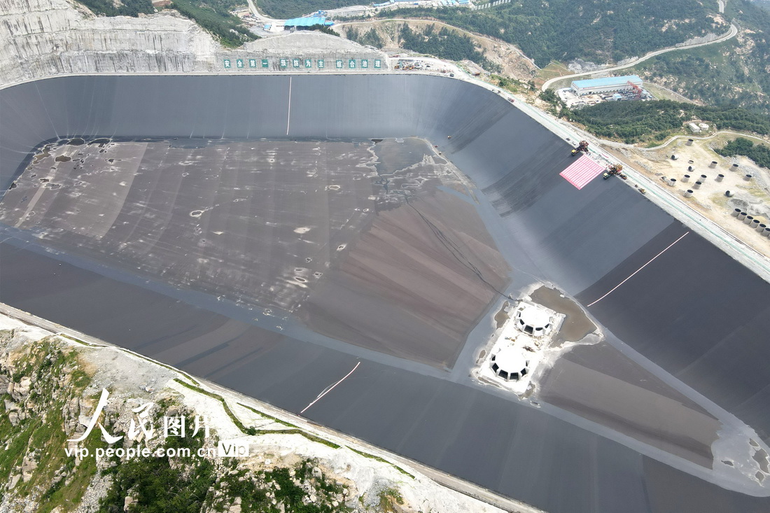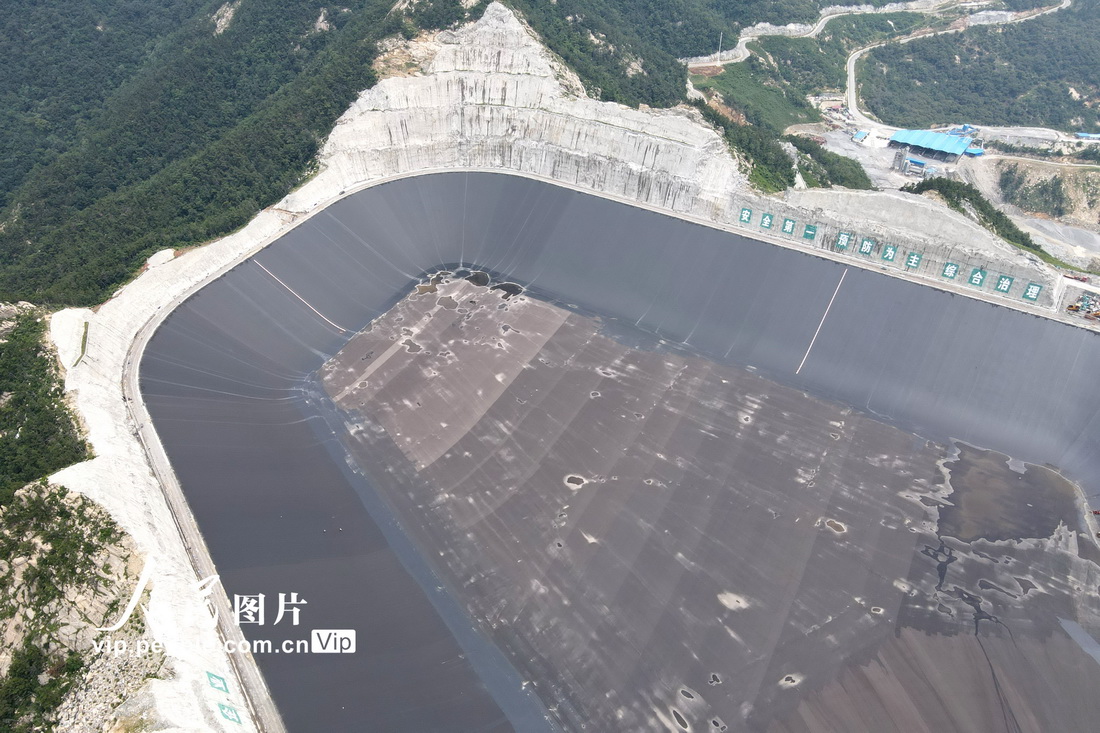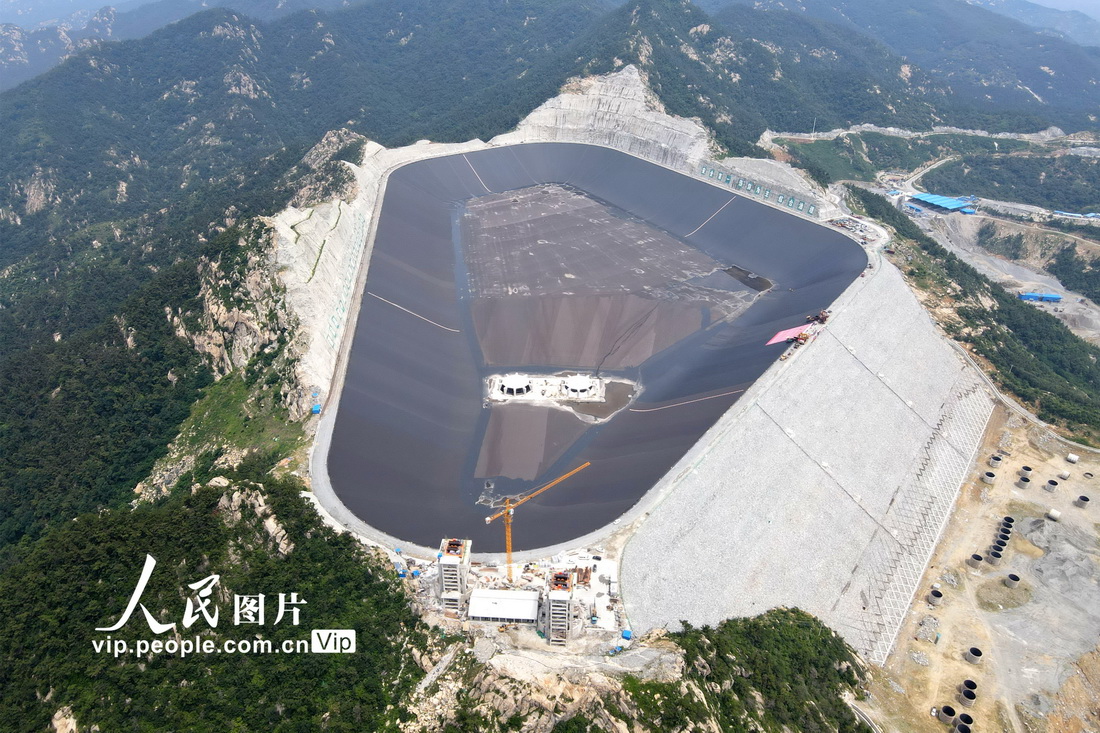 2021年7月1日,由中国能建葛洲坝集团承建的山东省沂蒙市抽水蓄能电站上水库库盆建设完工。沂蒙抽水蓄能电站工程总装机容量为1200兆瓦,建成后主要供电鲁南地区,承担山东电网调峰、填谷、调频、调相、负荷备用、事故备用等任务。王建锋摄(人民图片网)