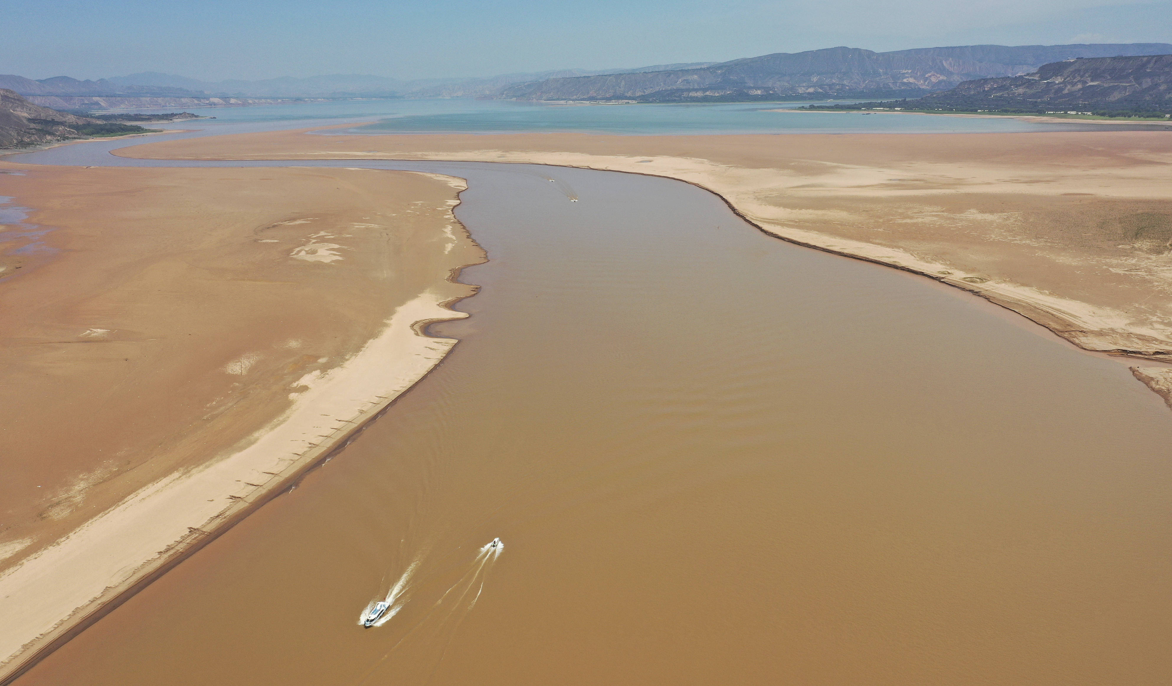 近期,位于黄河上游甘肃省永靖县境内的刘家峡水库按照黄河防总要求,加大下泄流量,调低水库水位,为汛期腾出更多库容,确保黄河流域安全度汛。新华社发(史有东 摄)