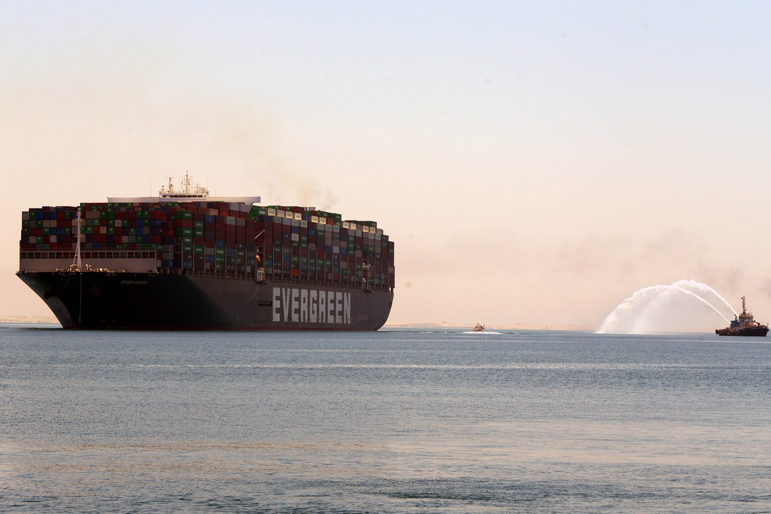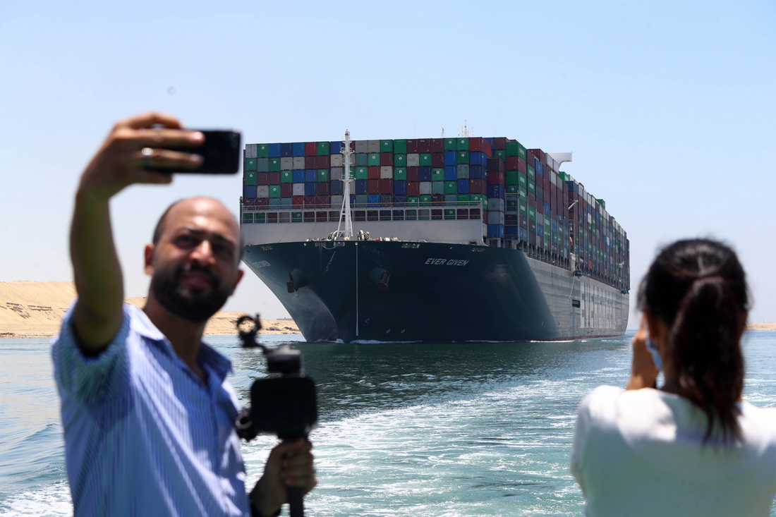 埃及苏伊士运河管理局主席乌萨马·拉比耶7日召开新闻发布会说,今年3月因搁浅造成苏伊士运河堵塞的“长赐”号货轮当天正式驶离运河。新华社发(艾哈迈德·戈马摄)