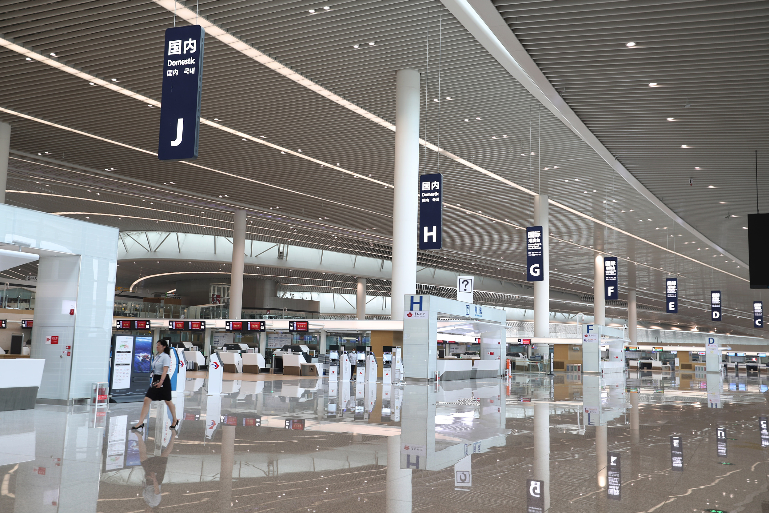 2021年7月12日,探访青岛胶东机场。据悉,胶东国际机场全面具备转场运营的条件,将于2021年8月12日零时正式实施转场运营,并同步关闭青岛流亭国际机场。(视觉中国)