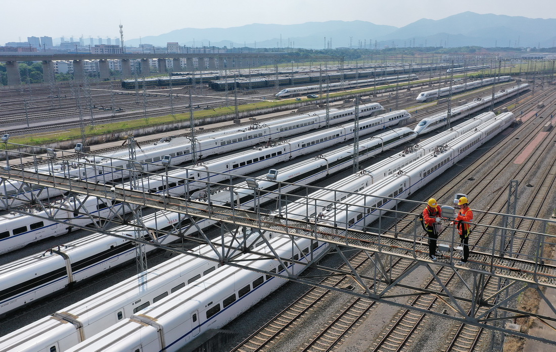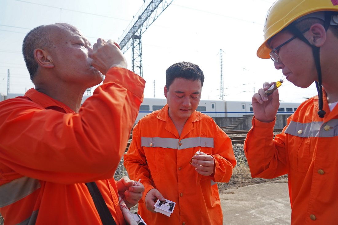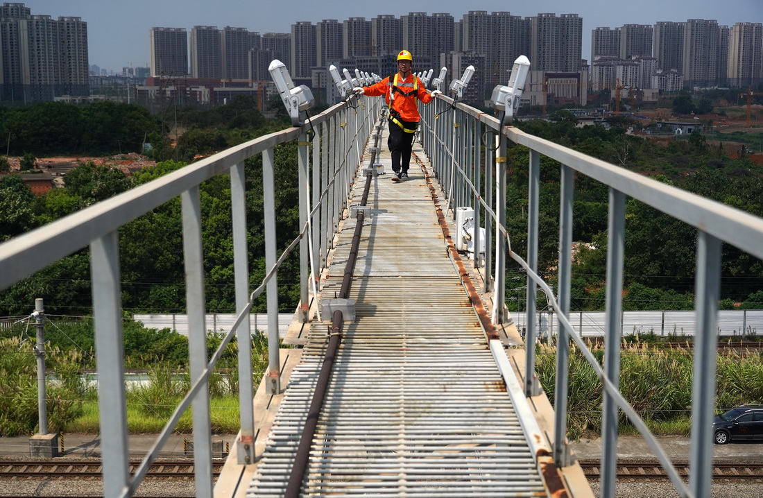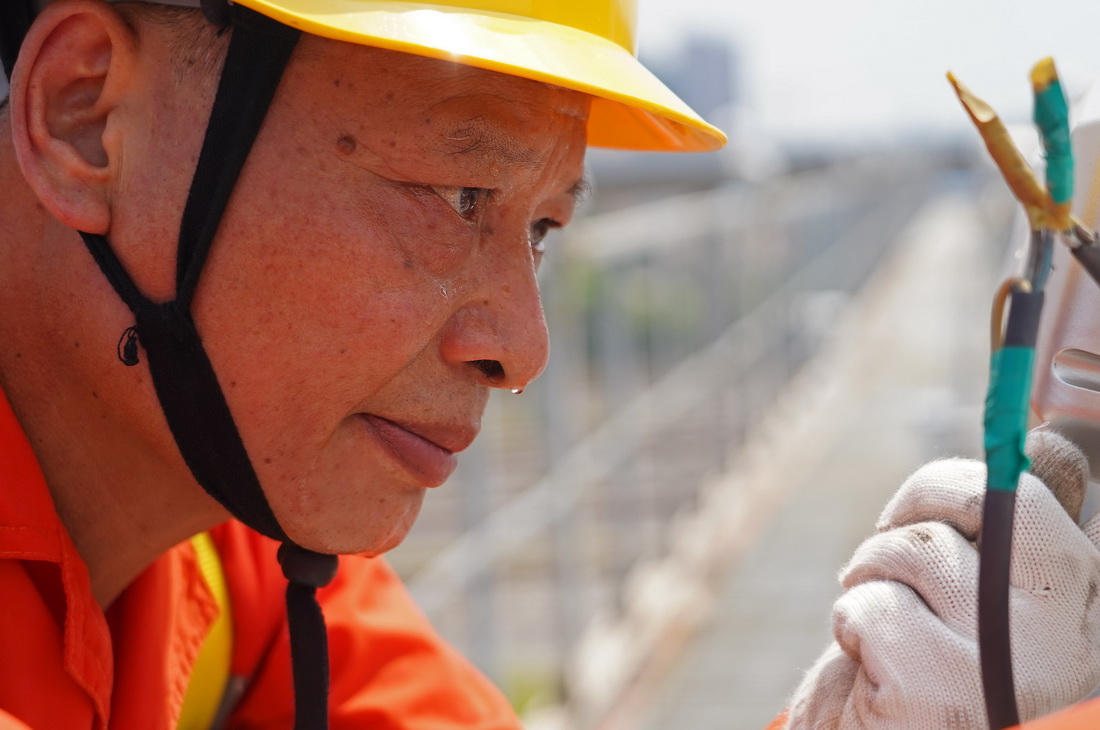 入伏以来,江西南昌迎来持续高温天气。高温下,有这样一群铁路电力工人,为了保障铁路暑运的安全坚守在工作岗位上。