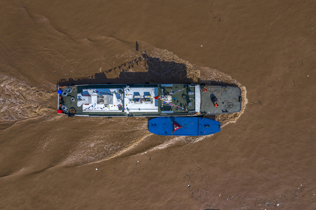 据悉,早在今年5月,重庆航道部门就制订了汛期航道维护方案,对防汛保畅工作进行了周密部署,为应对洪峰过境制定了应急预案。此次洪峰过境,重庆航道部门从7月10日已提前做好应对准备,及时向航运企业发布航道信息通告,确保了嘉陵江1号洪峰过境期间的船舶通行安全。郑宇摄(人民视觉)