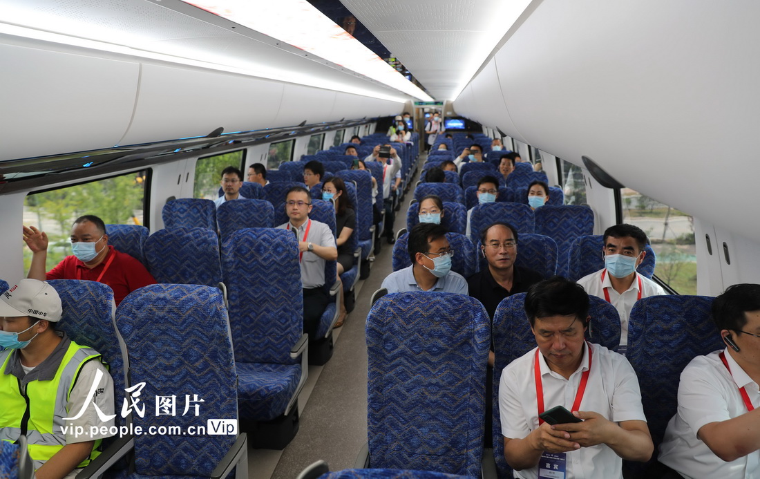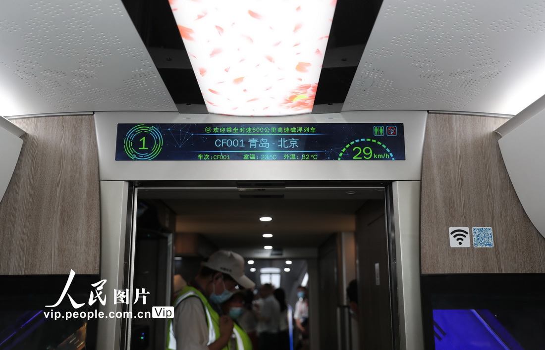 2021年7月20日,由中国中车承担研制、具有完全自主知识产权的时速600公里高速磁浮交通系统在山东青岛成功下线,这是世界首套设计时速达600公里的高速磁浮交通系统,标志着我国掌握了高速磁浮成套技术和工程化能力。张进刚摄(人民图片网)