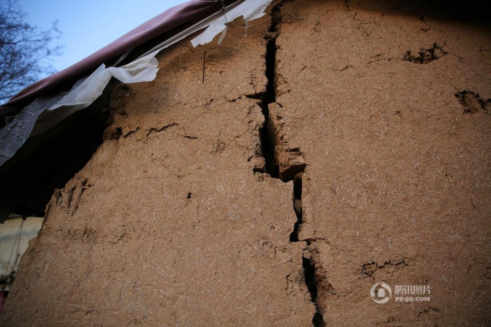 这一院土坯房是1966年郭文斌花3000元钱建造起来的,在60年代花3000元盖起这样的土坯房是很不容易的,郭文斌说,当时他在生产队干一天记10分,到年底这一个工也就分六七毛钱,主要还是靠养猪,一年养2头猪,一头猪能卖70来元,盖房的3000元钱就是这样靠挣工分和养猪慢慢积攒下来的。几间土坯房已有大大的裂缝,房顶也漏雨,他用塑料布一层层盖着。