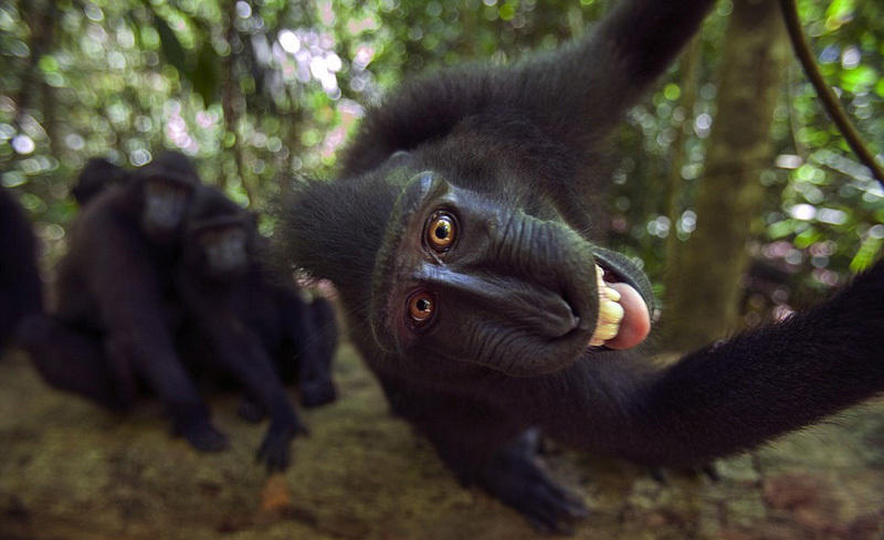 据悉,黑色猕猴一直以爱拍照而闻名。尤其是在2014年,一只淘气的黑色猕猴甚至还抢夺游客的相机玩自拍,结果使所在动物园陷入法律纠纷。