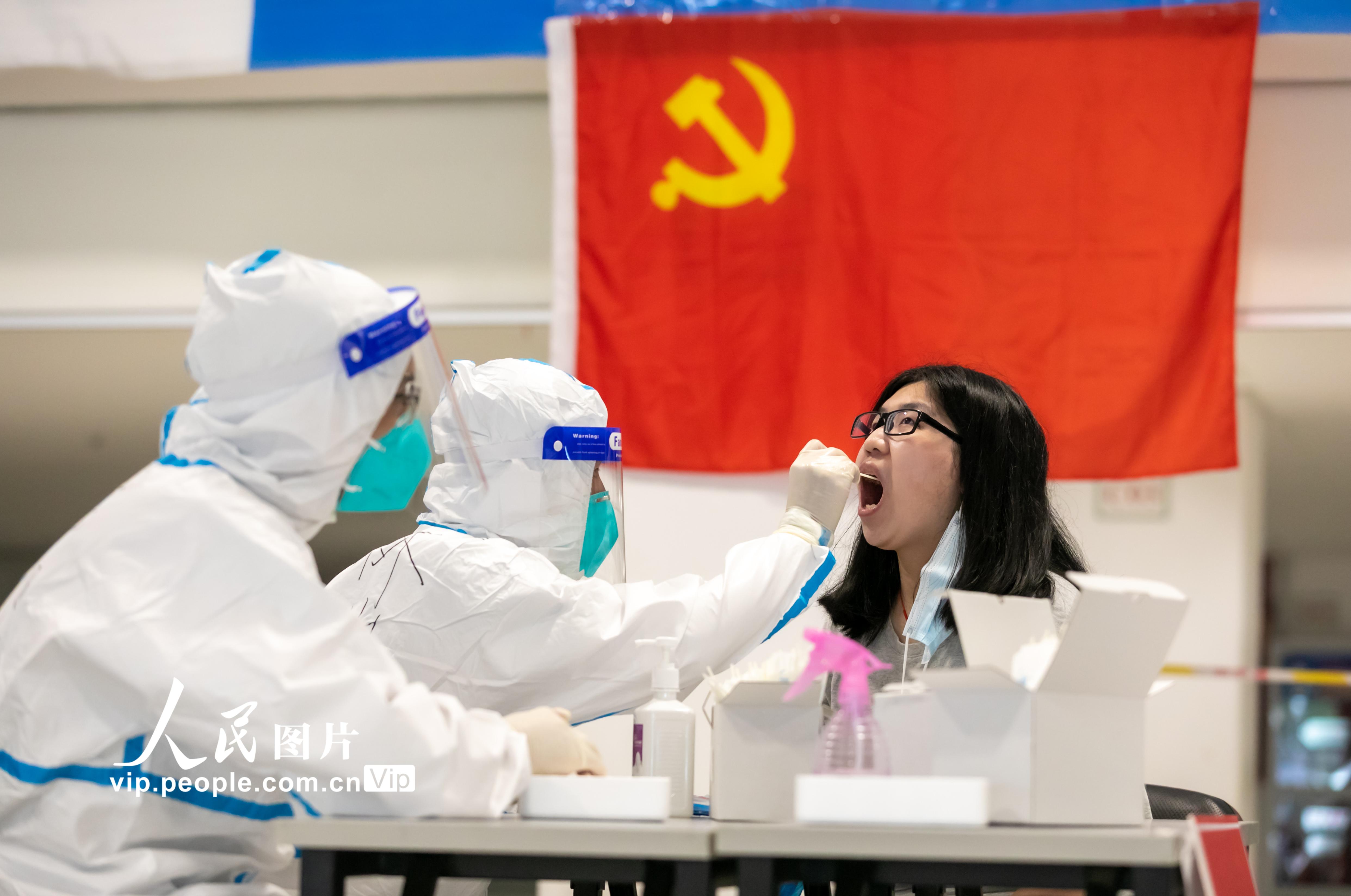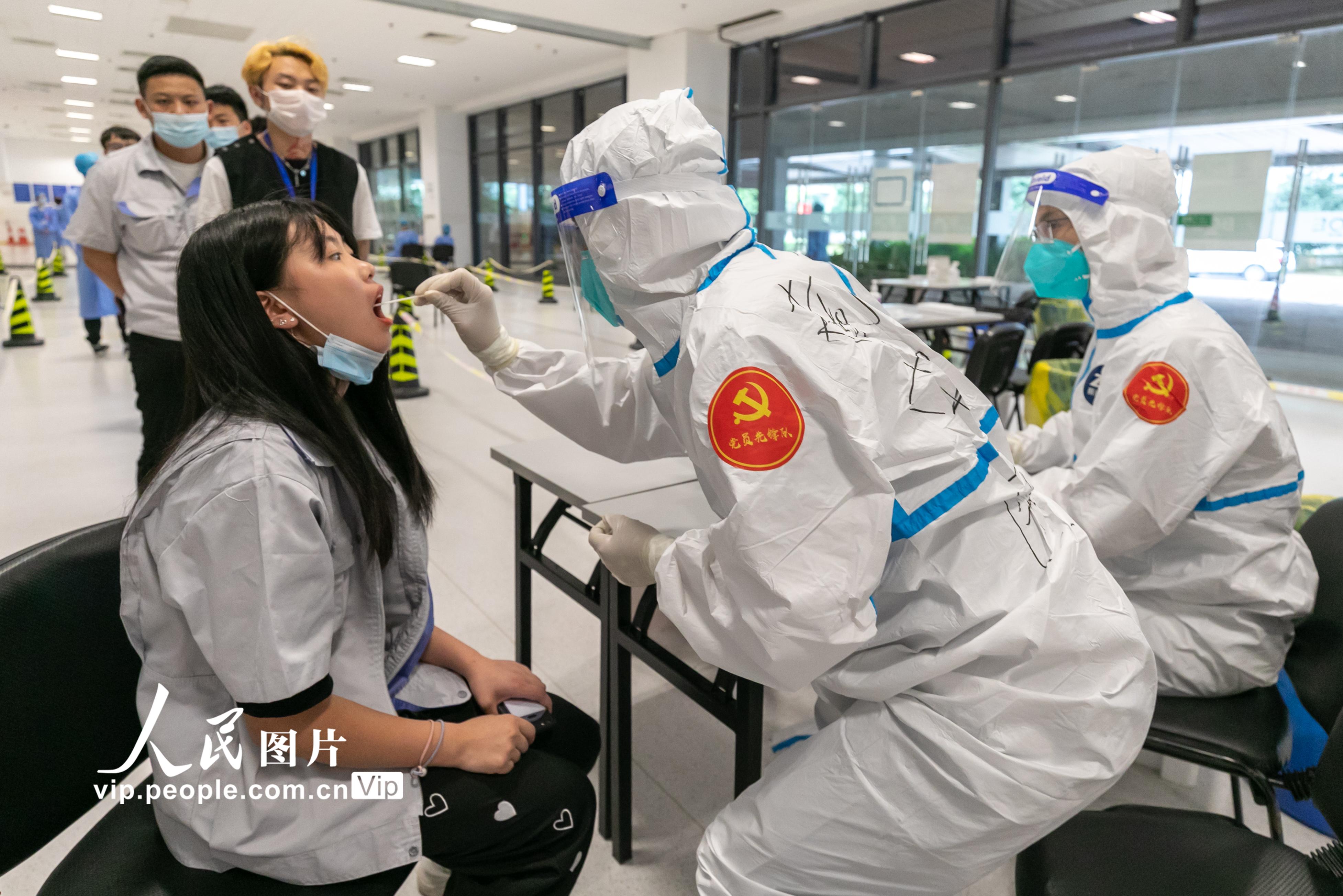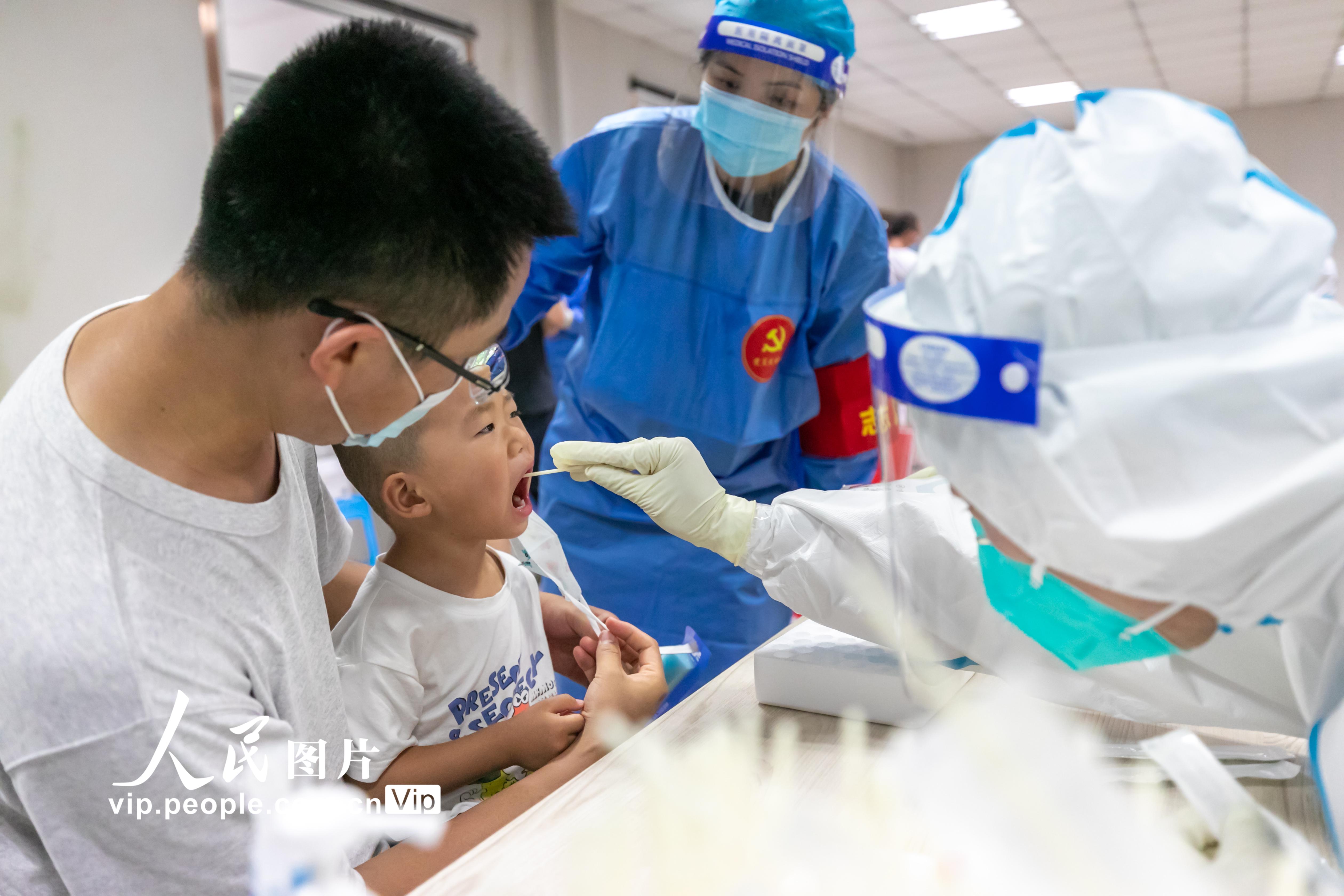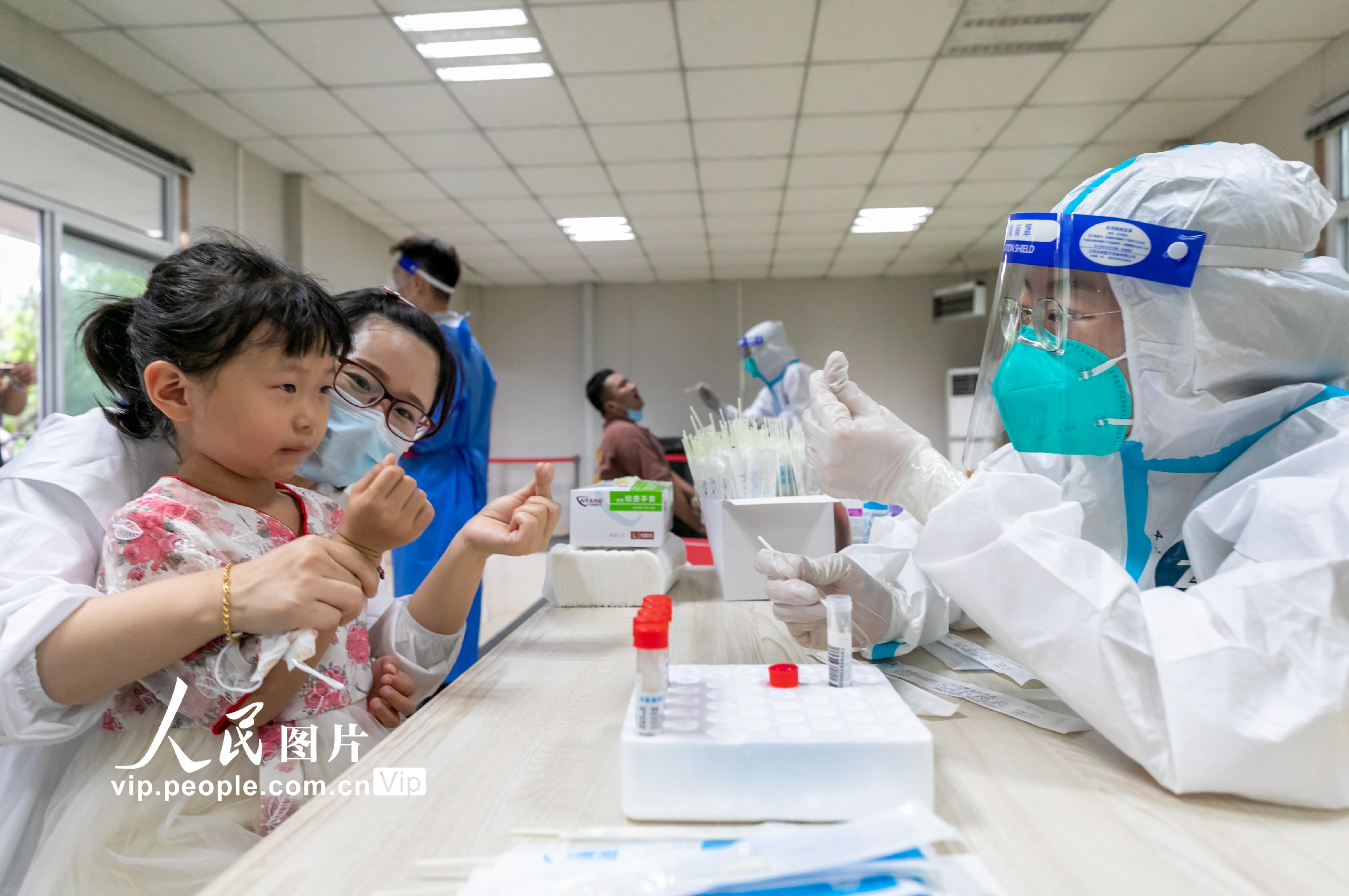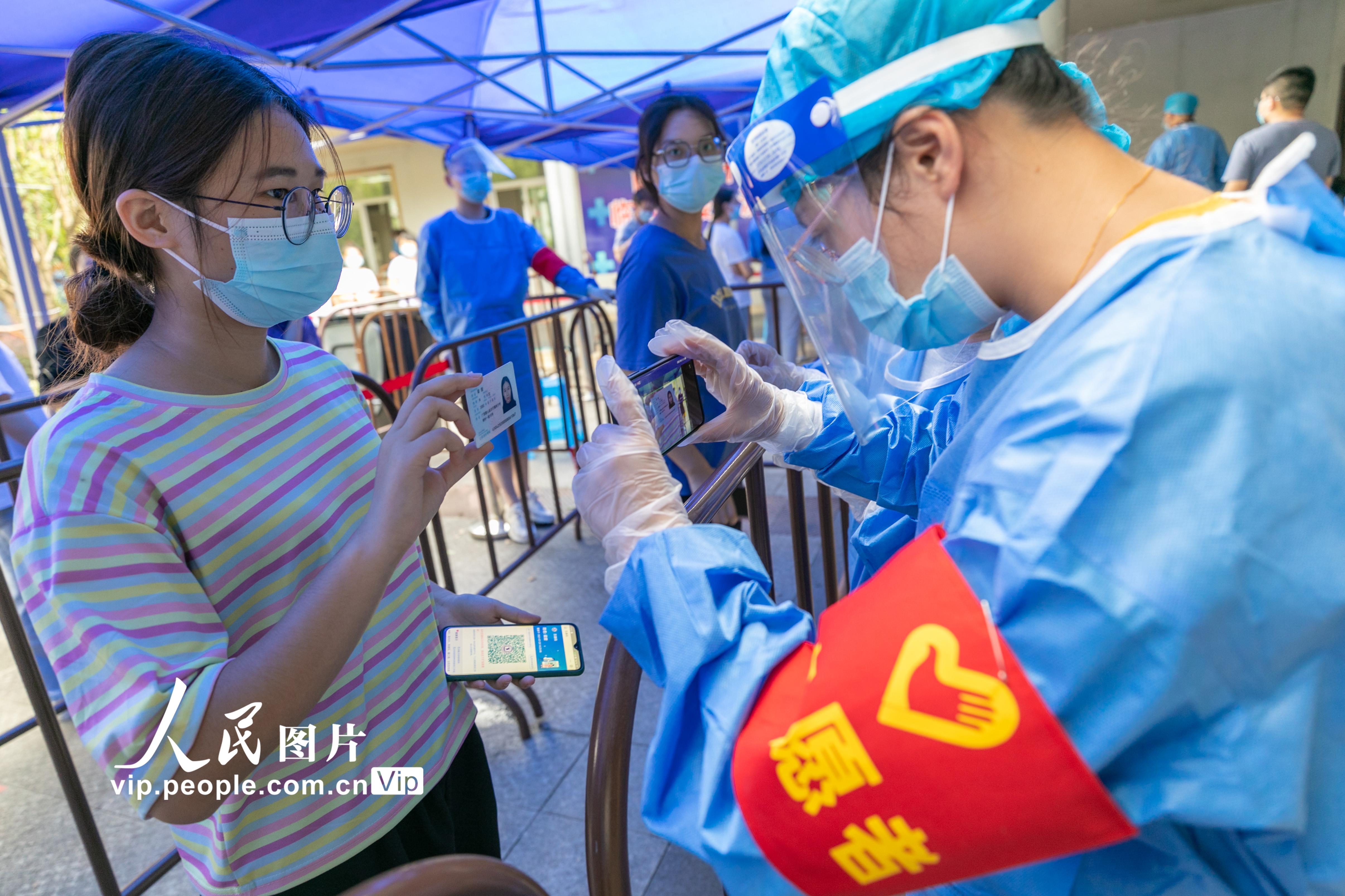 2021年7月29日,南京开启第三轮全员核酸检测。据悉,此次检测对象为全市范围内全部居民(含暂住人员),密接和次密接、高风险地区来宁以及黄码等集中或居家隔离人员。由医院观察人员,按相关规定组织采样。采样检测方式为高风险地区1:1单检,中风险地区1:5混检,低风险地区1:10混检。丁亮摄(人民图片网)