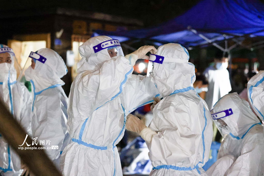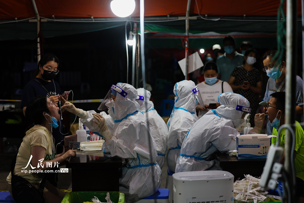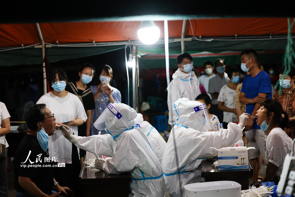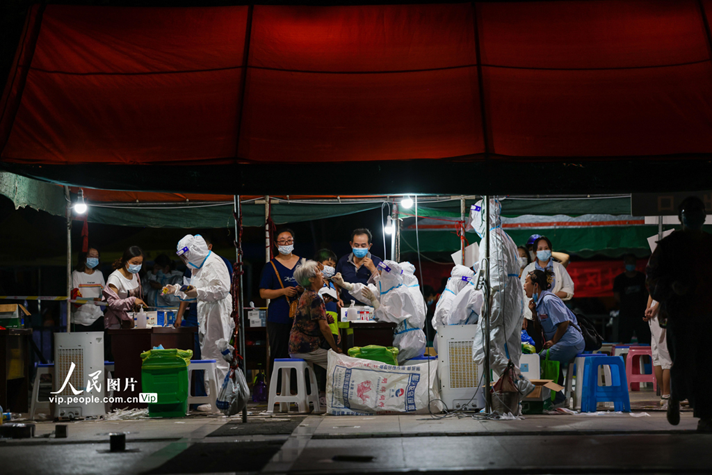 2021年8月3日,江苏省扬州市江都区连夜开展全民核酸检测采样。郁兴摄(人民图片网)