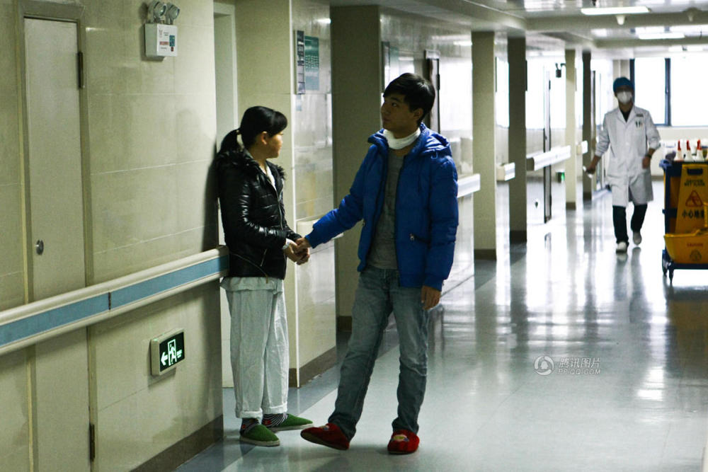 手术前,姚言芝和陈坦在病房里再也坐不住了,一起来到病房楼道里等待,母子俩靠在扶手上开开玩笑,相互缓解紧张情绪。“14床姚言芝,准备手术。”早上8:00,护士的提醒打断了母子的聊天。