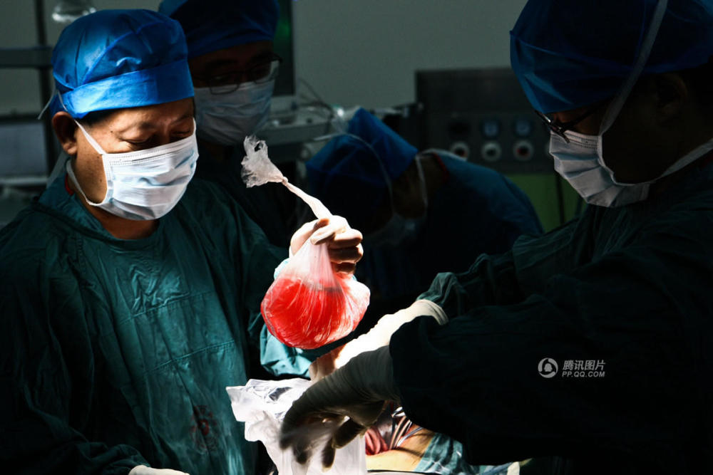 肾脏取下后,医生们迅速将肾脏放入冰块中保存,并且检查肾动静脉有无损伤,予以修补。