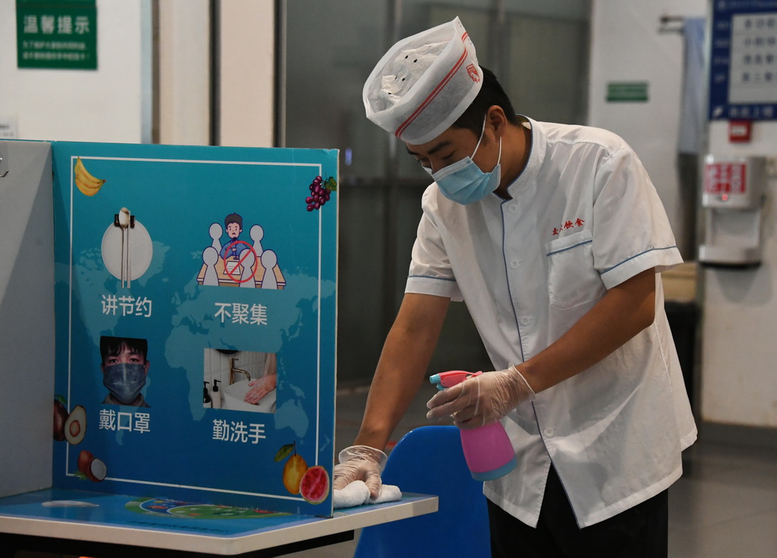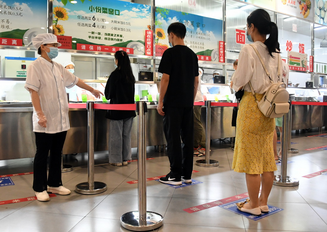8月9日,北京交通大学食堂加强管理,通过定期卫生消毒、定期对食堂进行环境采样等措施,保障在校师生用餐安全。新华社记者 任超 摄
