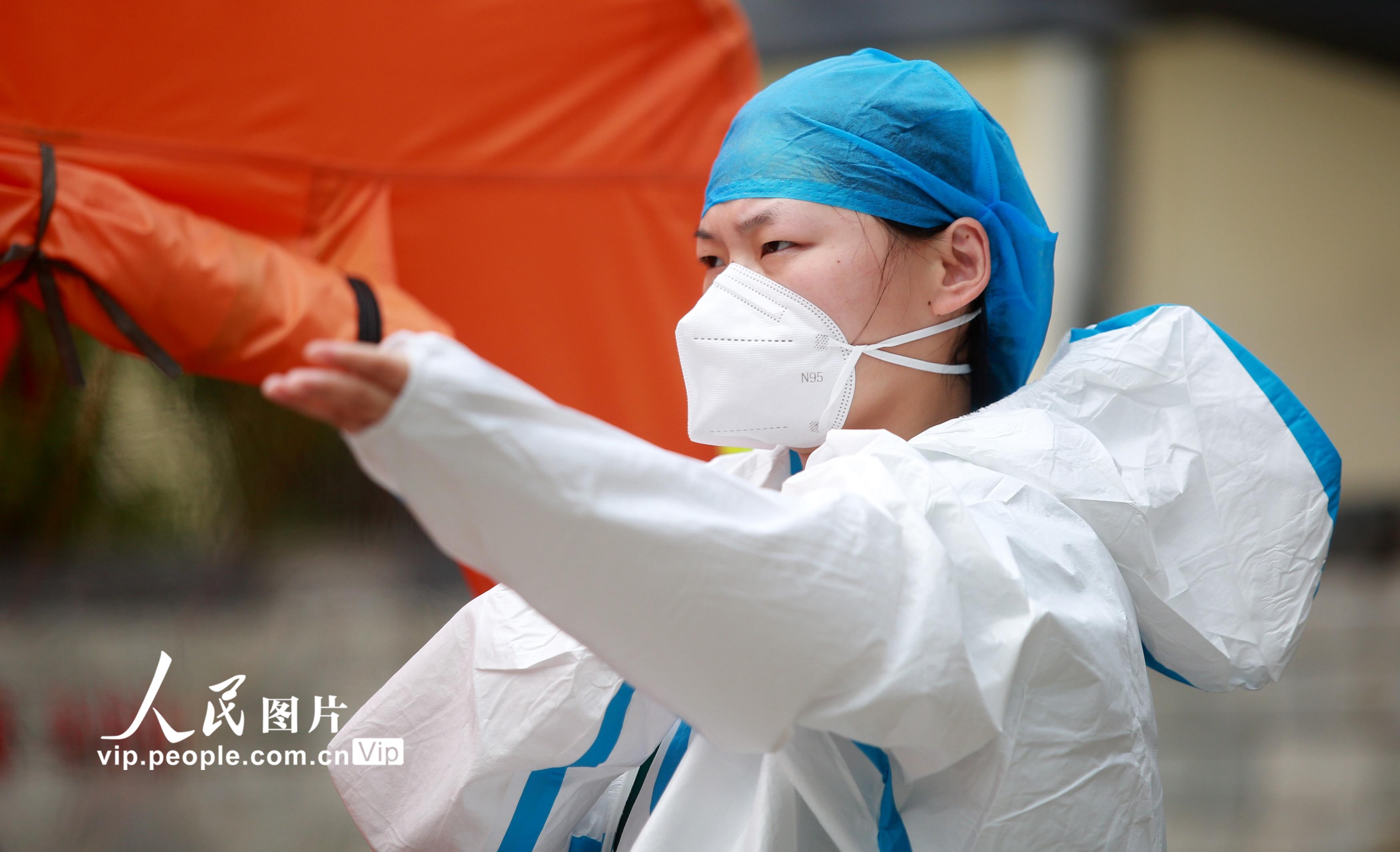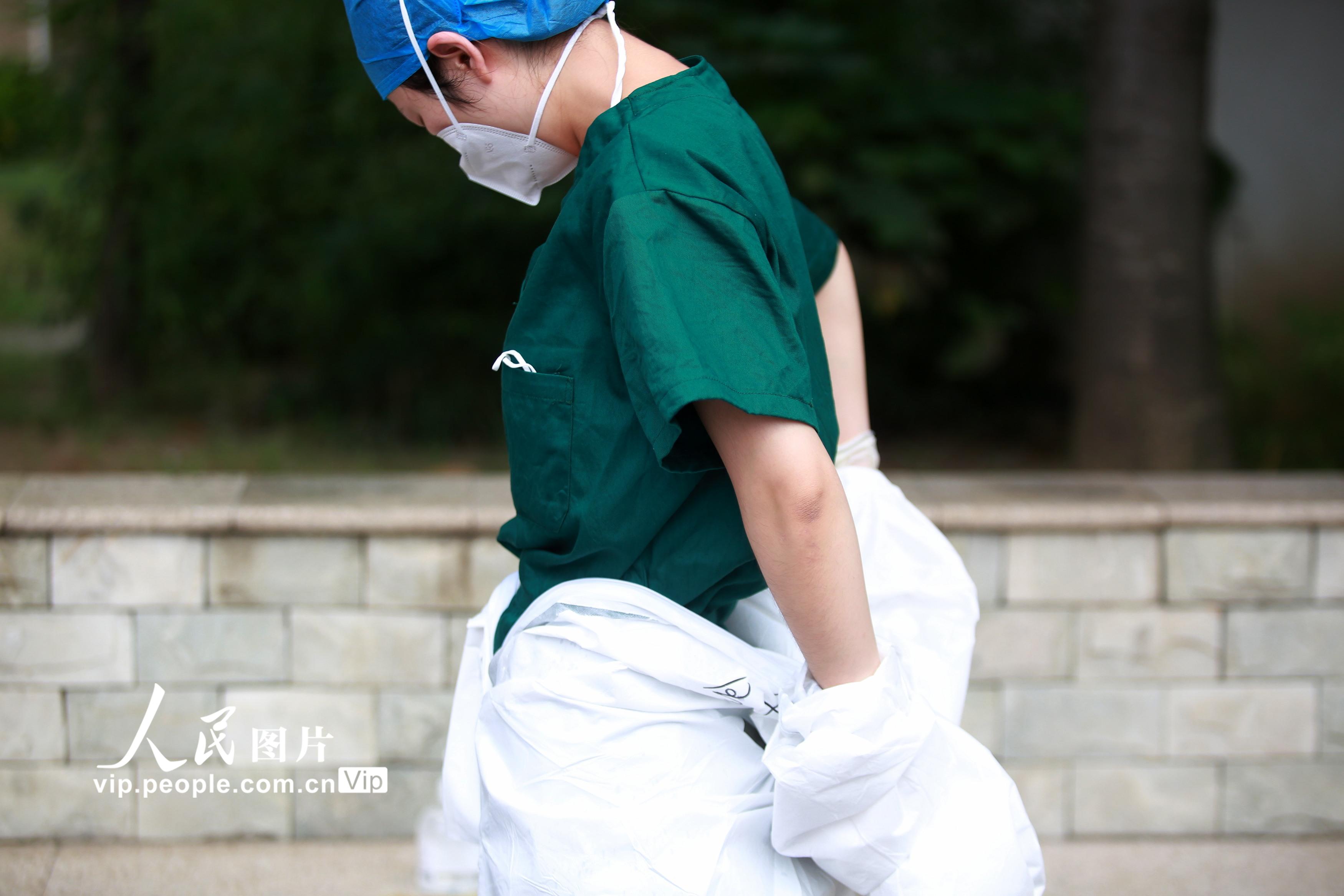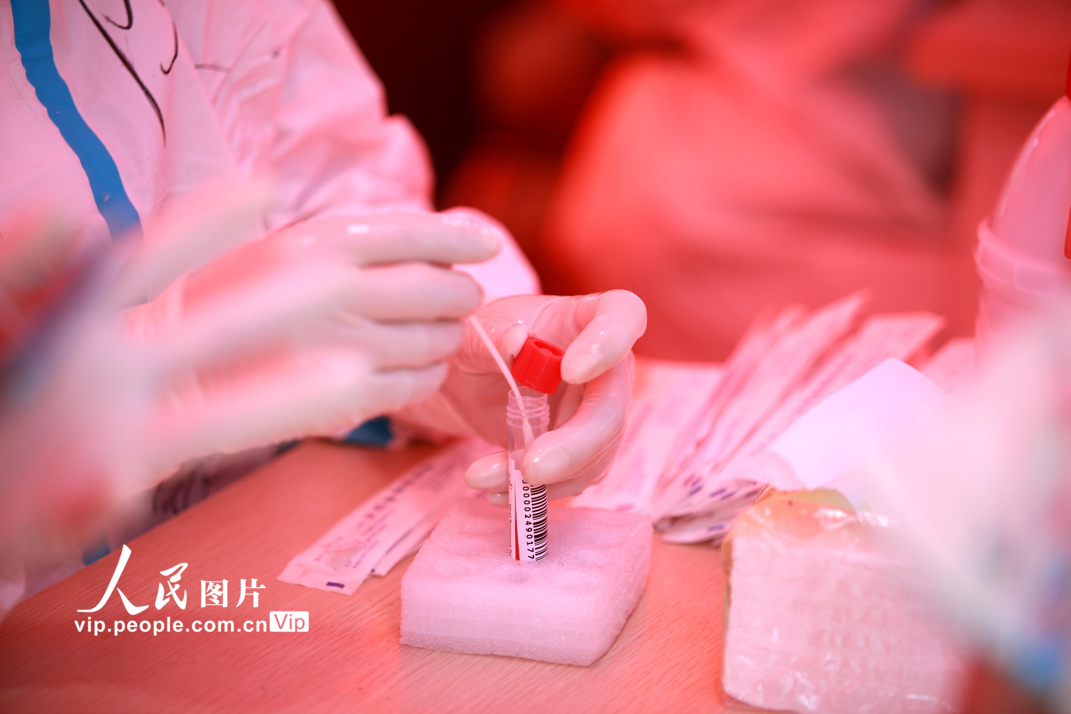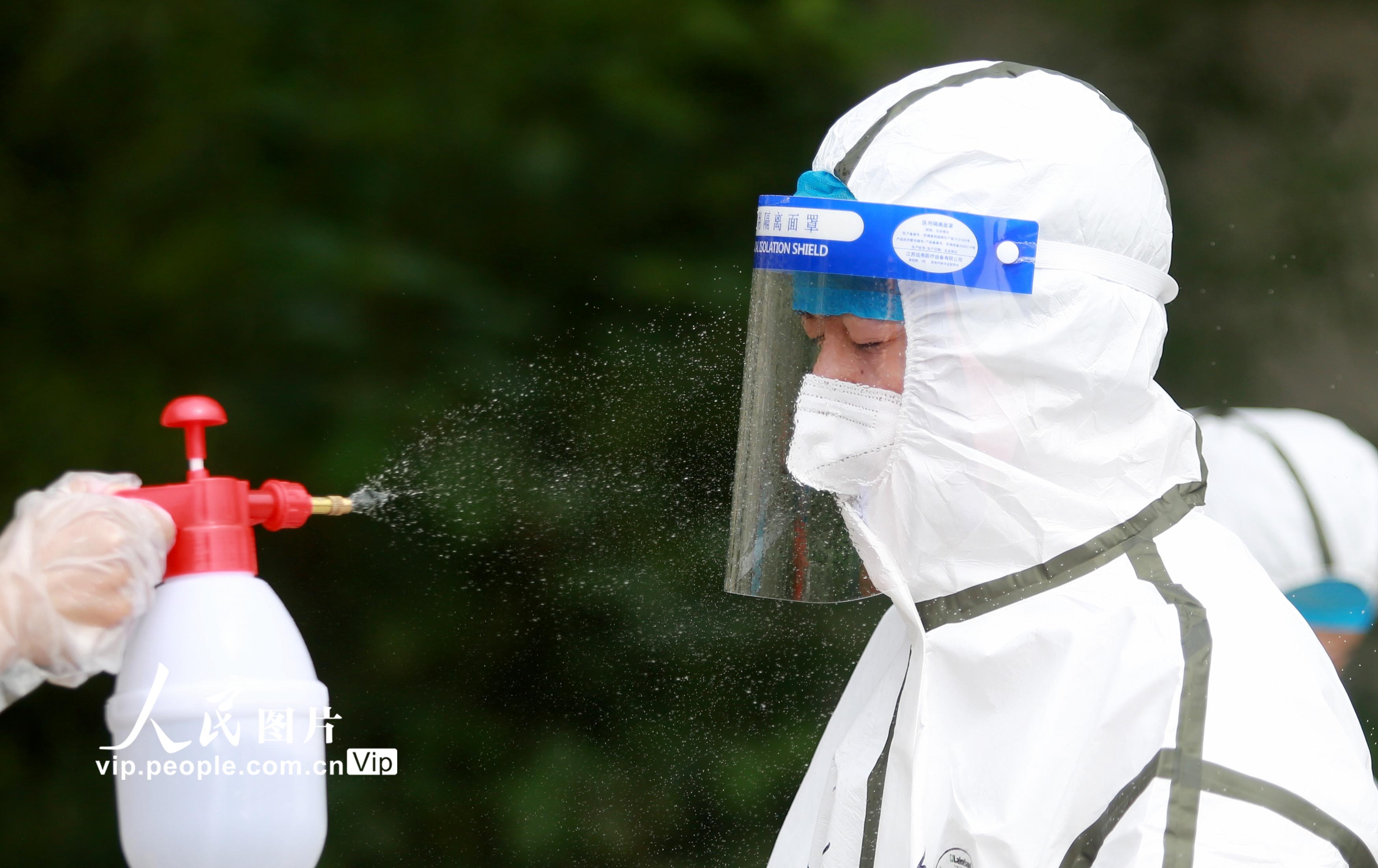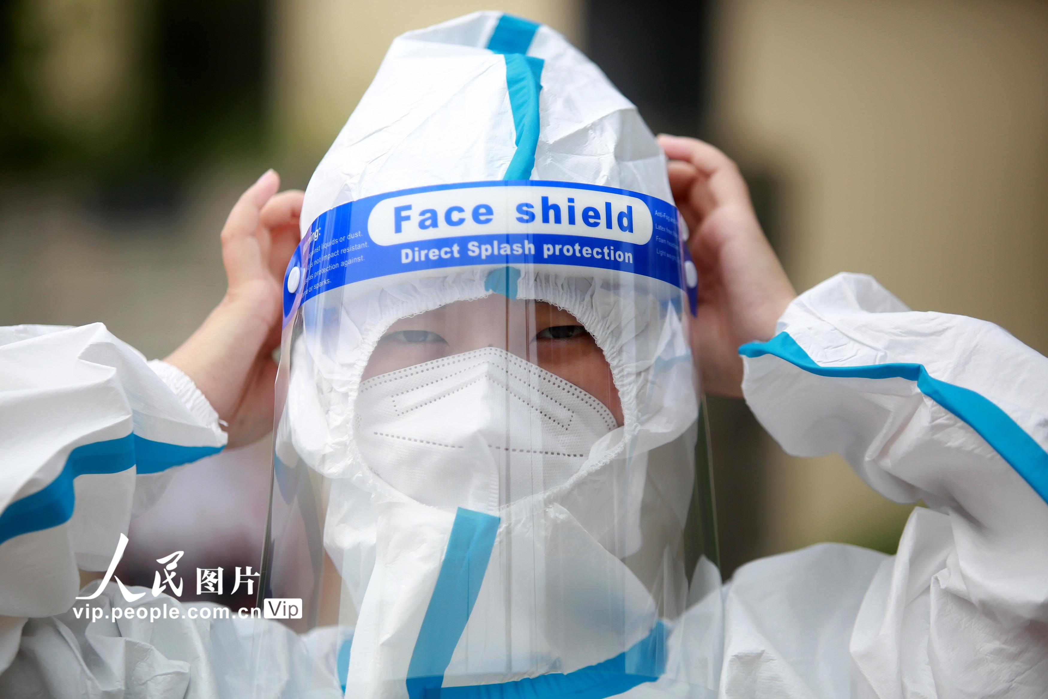 2021年8月11日,江苏省扬州市主城区开展第六轮大规模核酸检测,在江苏省扬州市邗江区竹西街道竹西社区的核酸检测点,各级医务人员紧急响应,冒着高温进行核酸检测工作,坚守在抗疫一线,默默为人民群众服务。孟德龙摄(人民图片网)