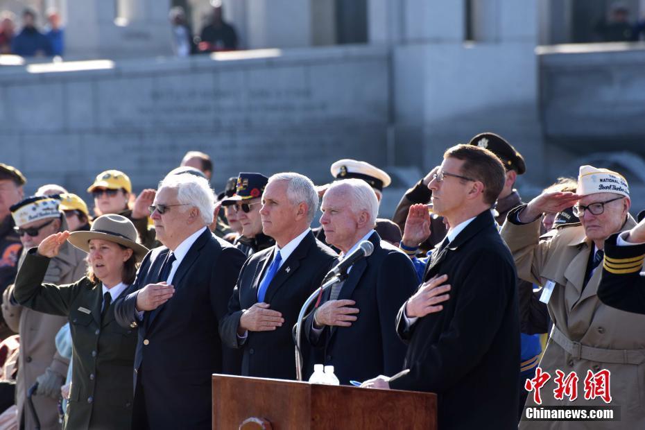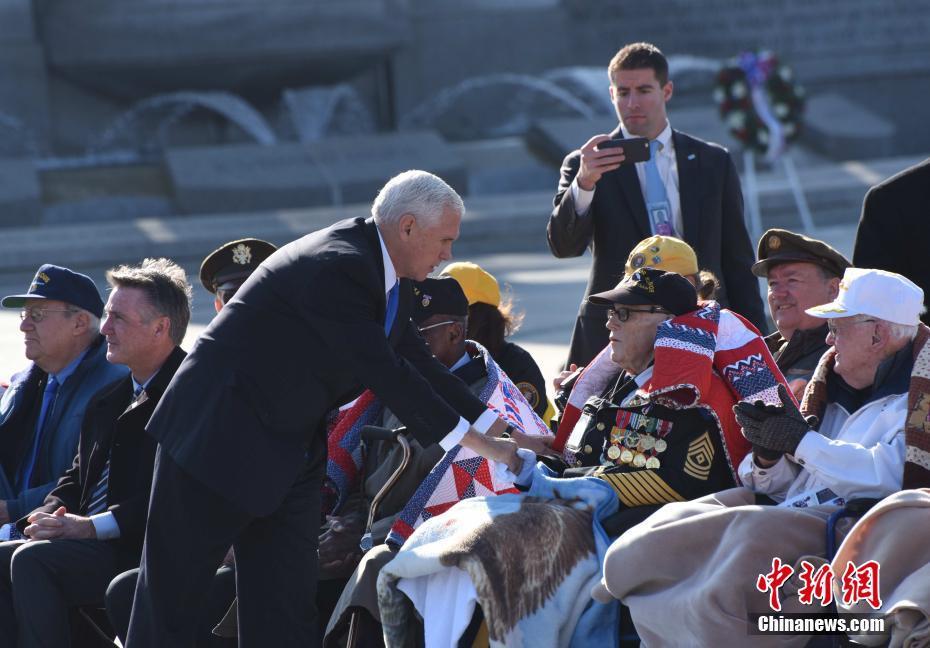 当地时间12月7日,美国首都华盛顿举行珍珠港事件75周年纪念活动。美国当选副总统彭斯、数名珍珠港事件幸存者、二战老兵和家属以及数百名美国民众当天前往位于华盛顿的二战纪念碑,参加纪念活动。