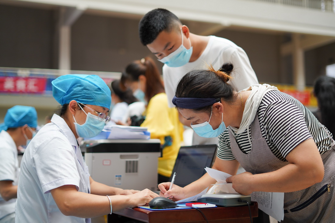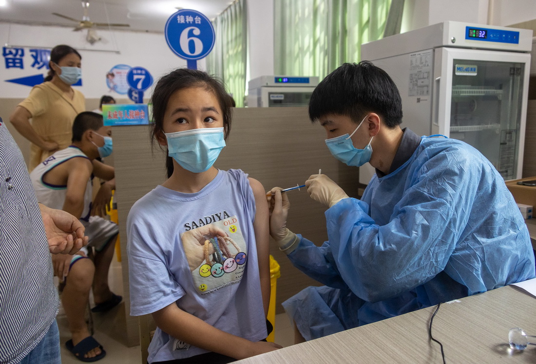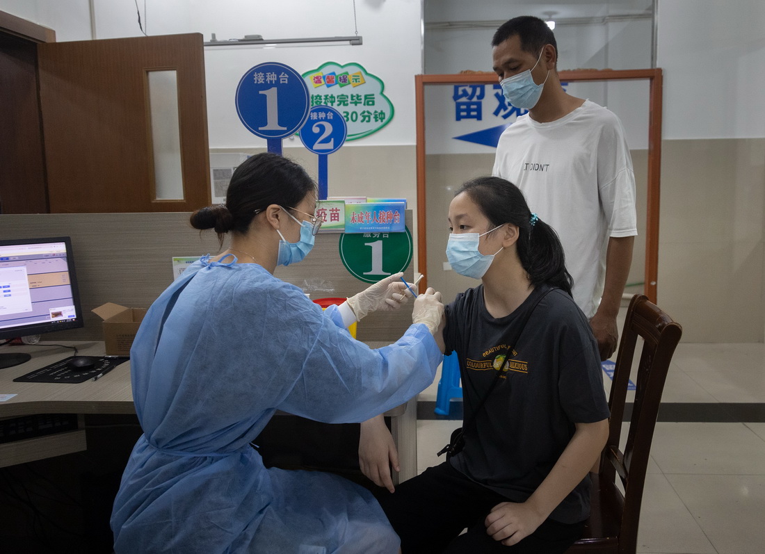 近日,各地启动12至17岁人群新冠疫苗免费接种服务工作,通过开设疫苗接种专场服务、增加医护人员和现场保障人员等措施,确保12至17岁人群新冠疫苗接种工作顺利进行。据介绍,未成年人接种疫苗时,采取家长(监护人)、本人双告知、双签字、双到场方式进行,接种过程家长或监护人需全程陪同。新华社发
