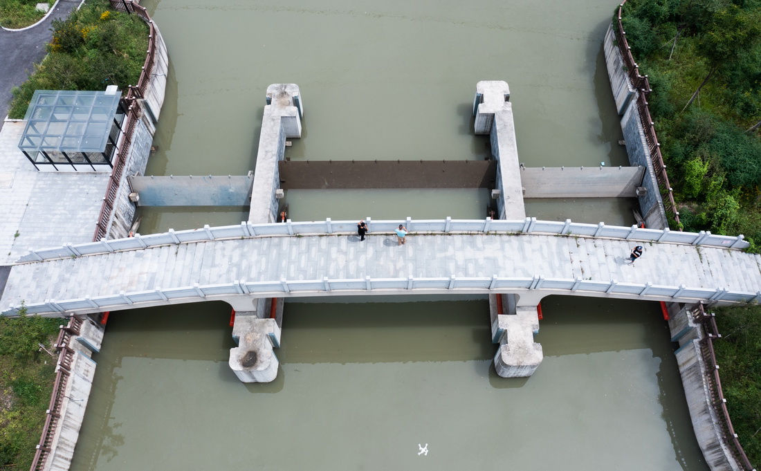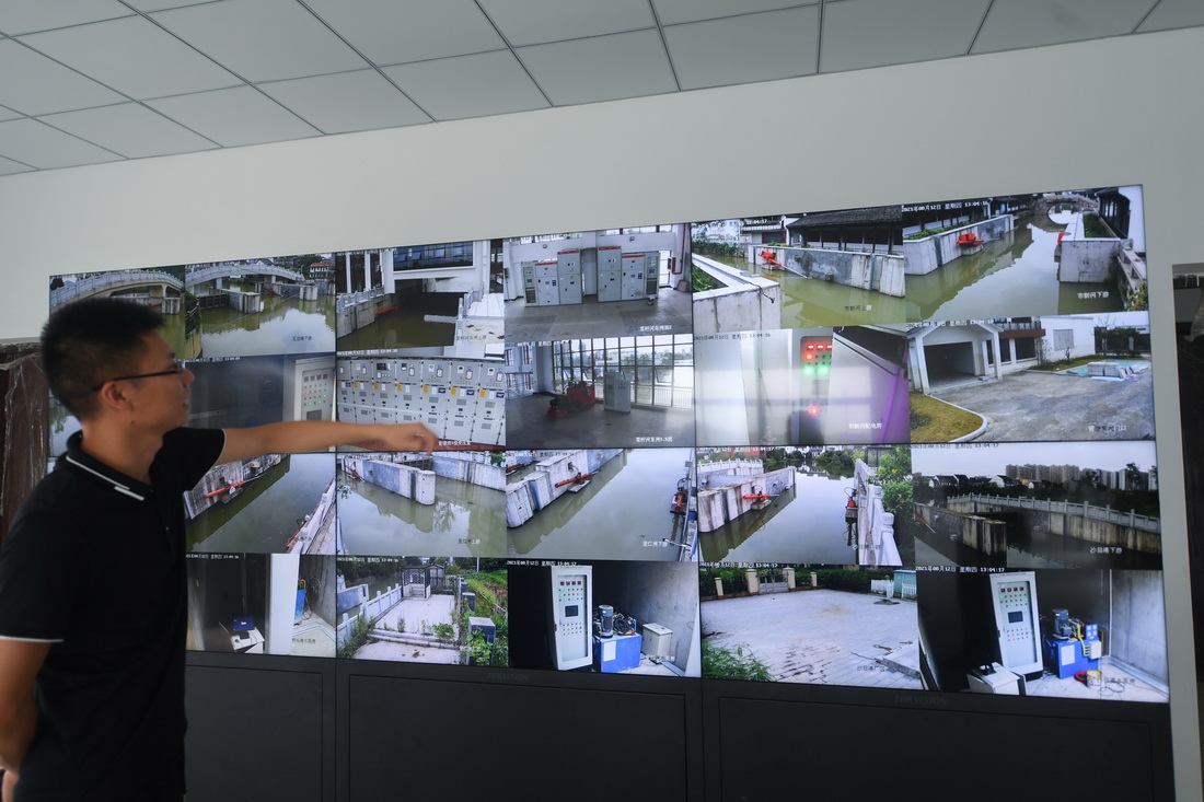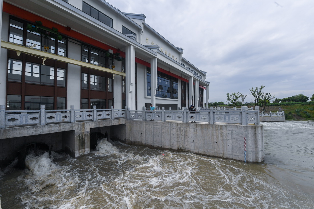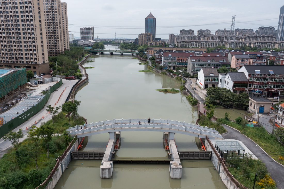 浙江省杭州市临平区塘栖镇位于杭州市北部,地处杭嘉湖平原,境内水网密布、河道纵横,水资源丰富。当地政府部门针对水乡地势低洼容易出现内涝的情况,积极推进水乡防洪排涝工程,在塘栖镇镇区内的主干河道建设7座闸站,承担防洪排涝和调节水位的作用。工程于2021年6月建设完成,7月“烟花”台风登陆浙江时,塘栖镇圩区内没有发生内涝。新华社记者 徐昱 摄