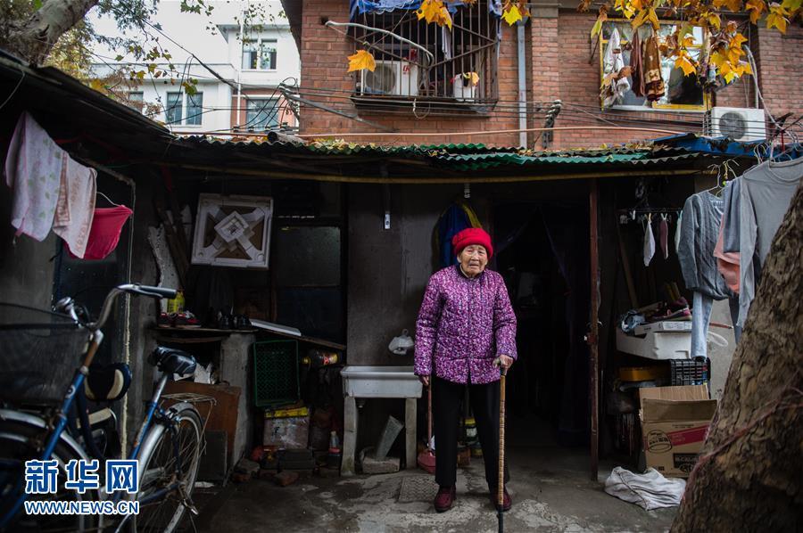 易翠兰在南京临时租住的房子门前(11月25日摄)。易翠兰,1923年5月6日生于南京老城南。1937年冬,易翠兰被家人在脸上涂满锅灰装扮成男孩,辗转在五台山难民区和金陵女子大学难民收容所避难。虽然最终从血泊中死里逃生,但她因遭日军用枪托殴打,落下终身病根,经常疼痛难忍。