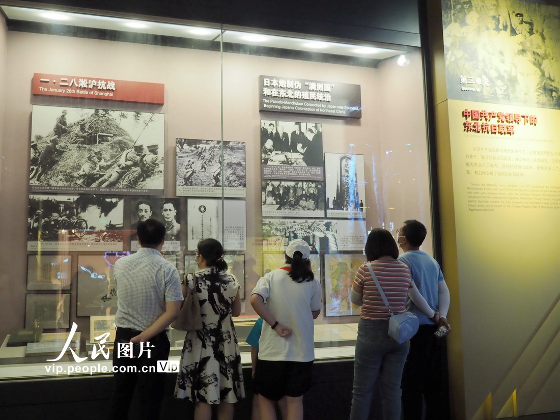 2021年8月25日,观众在中国人民抗日战争纪念馆内参观“伟大胜利——纪念中国人民抗日战争暨世界反法西斯战争胜利大型主题展览”。