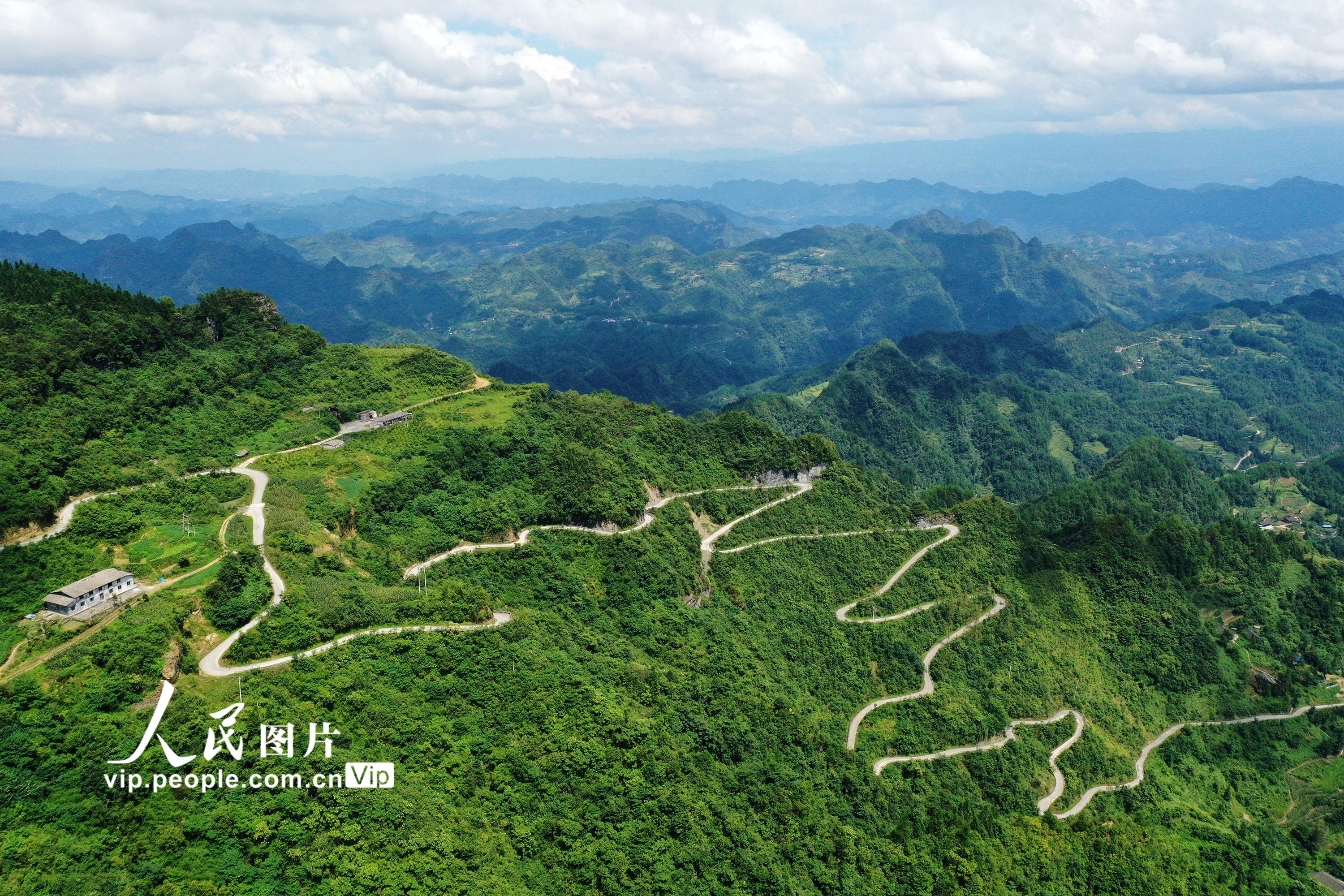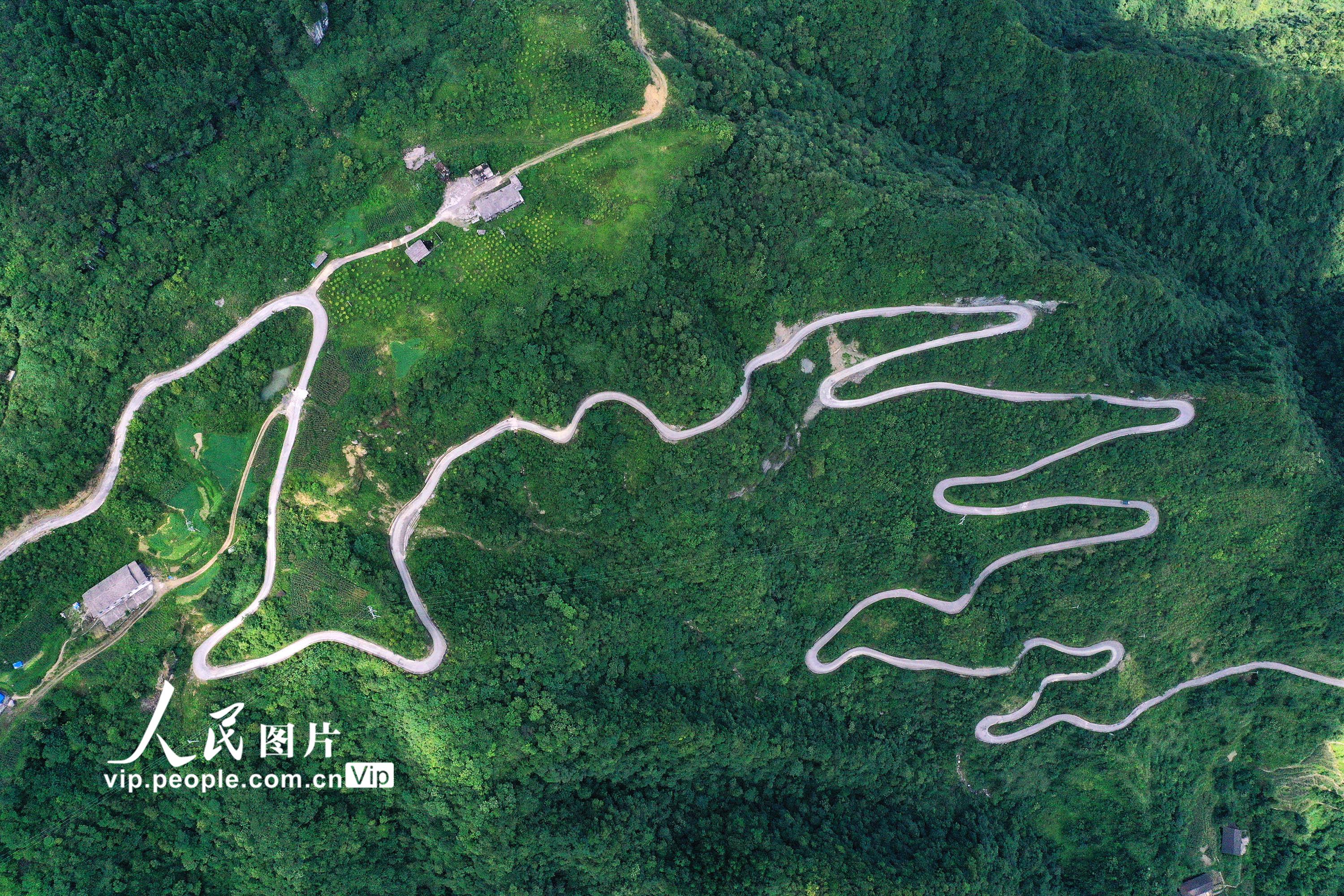 重庆市黔江区白土乡三塘村位于四周是悬崖的三塘盖,被称为“悬崖上的村落”。据悉,通往三塘村的公路从海拔500多米的山脚沿着悬崖盘旋至海拔1500多米的山顶,全长17公里,共计68道弯,宛如一条巨龙蜿蜒山间,被人们称为“天路”。 三塘村的公路带动了三塘村经济发展,助推了乡村振兴,也吸引了不少游客前来观光旅游。杨敏摄(人民图片网)