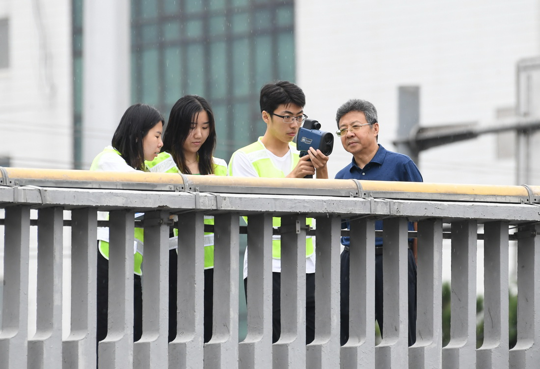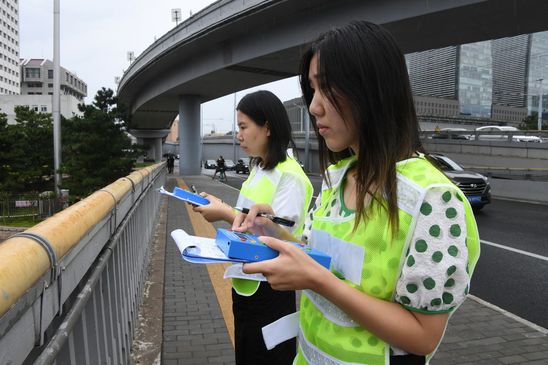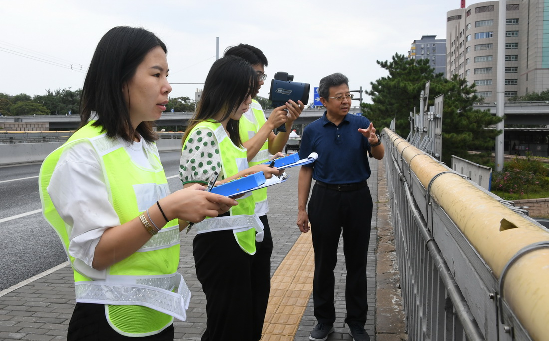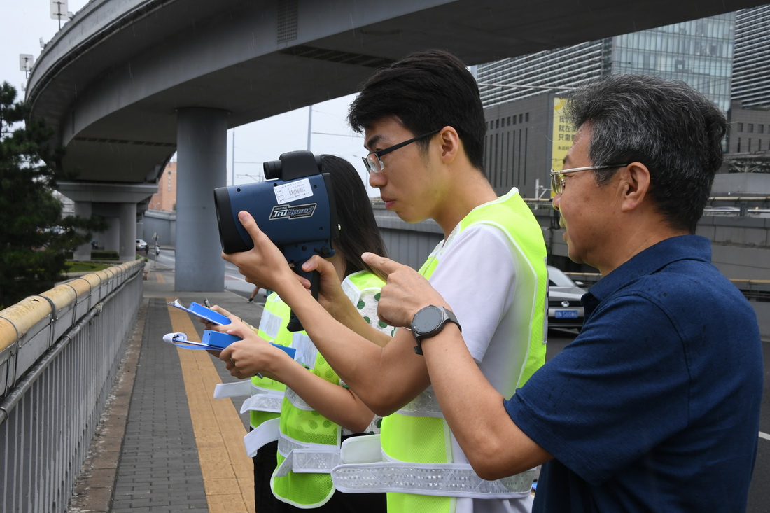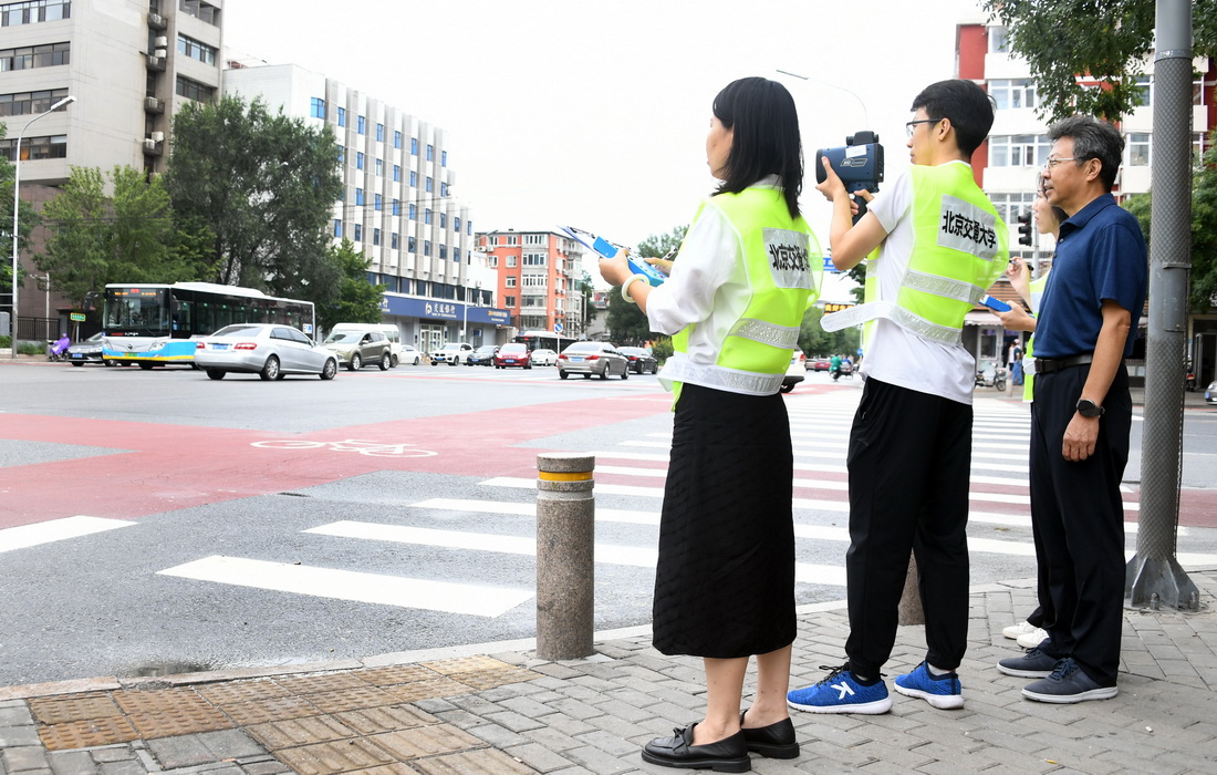 新学期临近,北京交通大学交通运输学院老师邵春福和学生们在西直门桥开展了一堂暑期实践课,课程内容是数车。