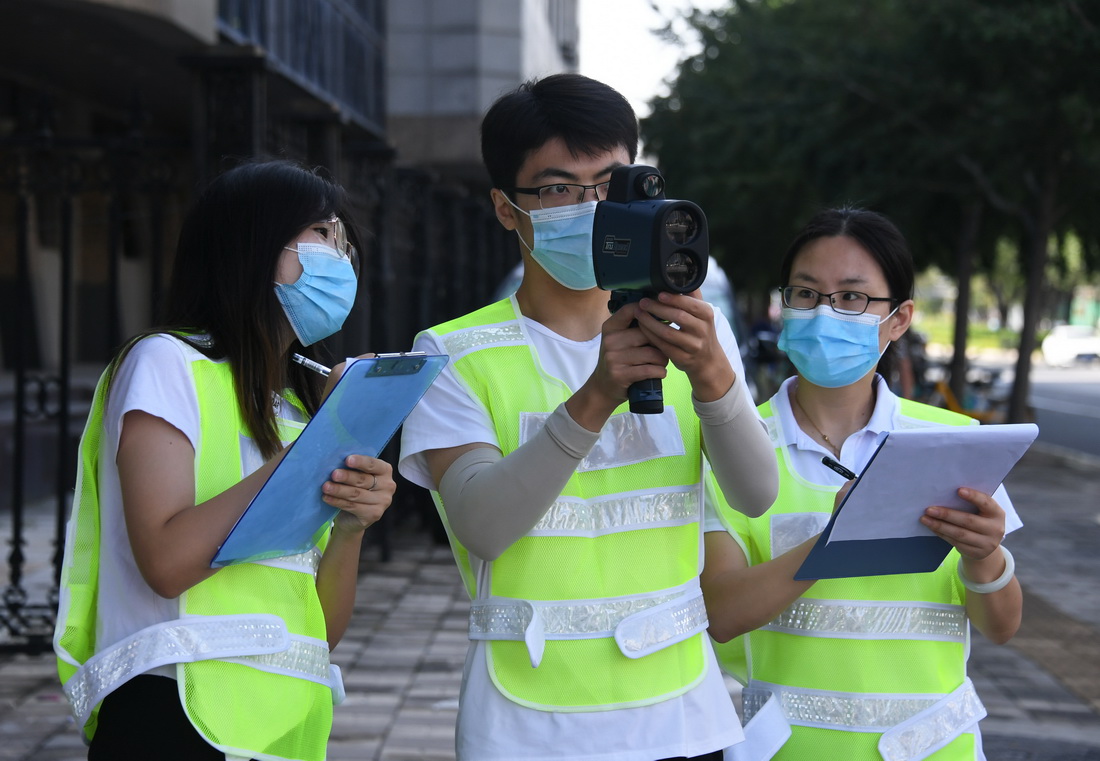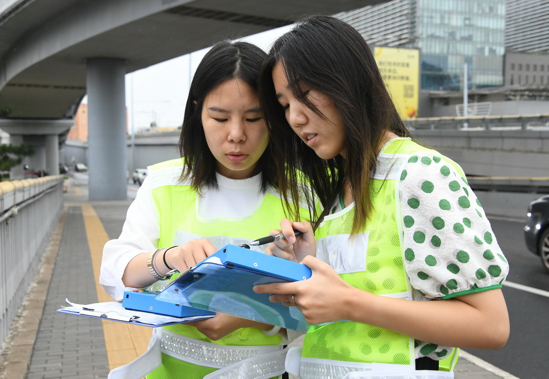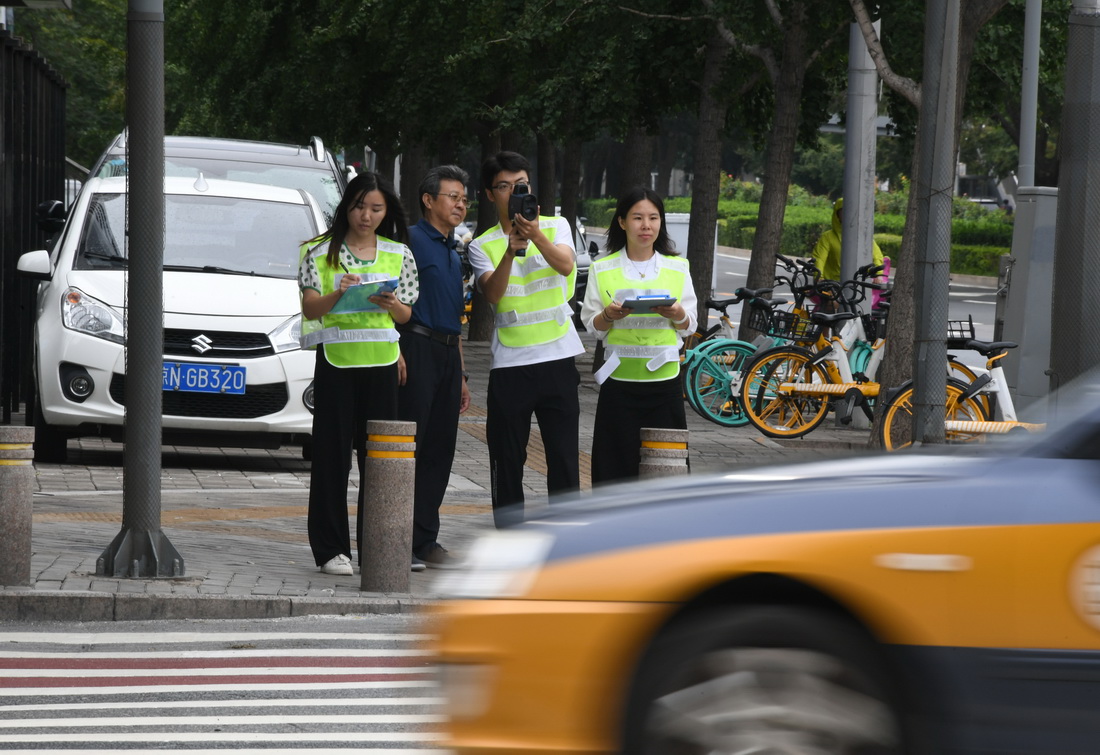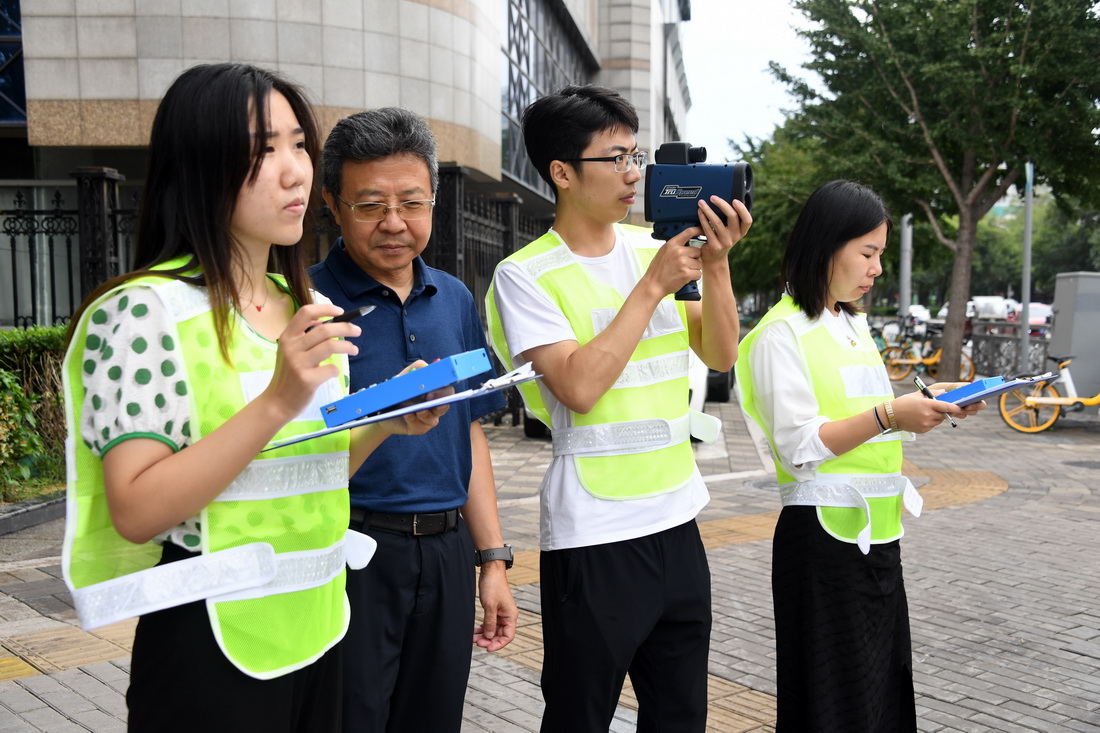 新学期临近,北京交通大学交通运输学院老师邵春福和学生们在西直门桥开展了一堂暑期实践课,课程内容是数车。