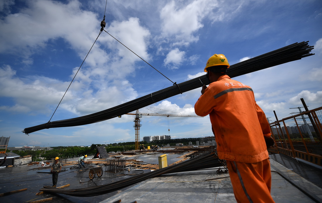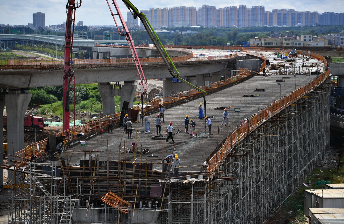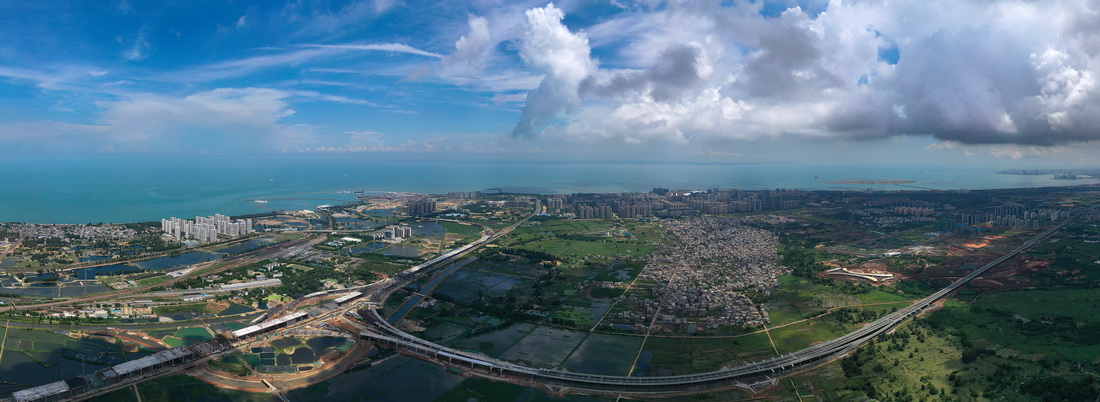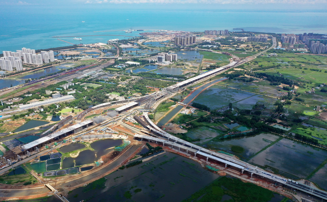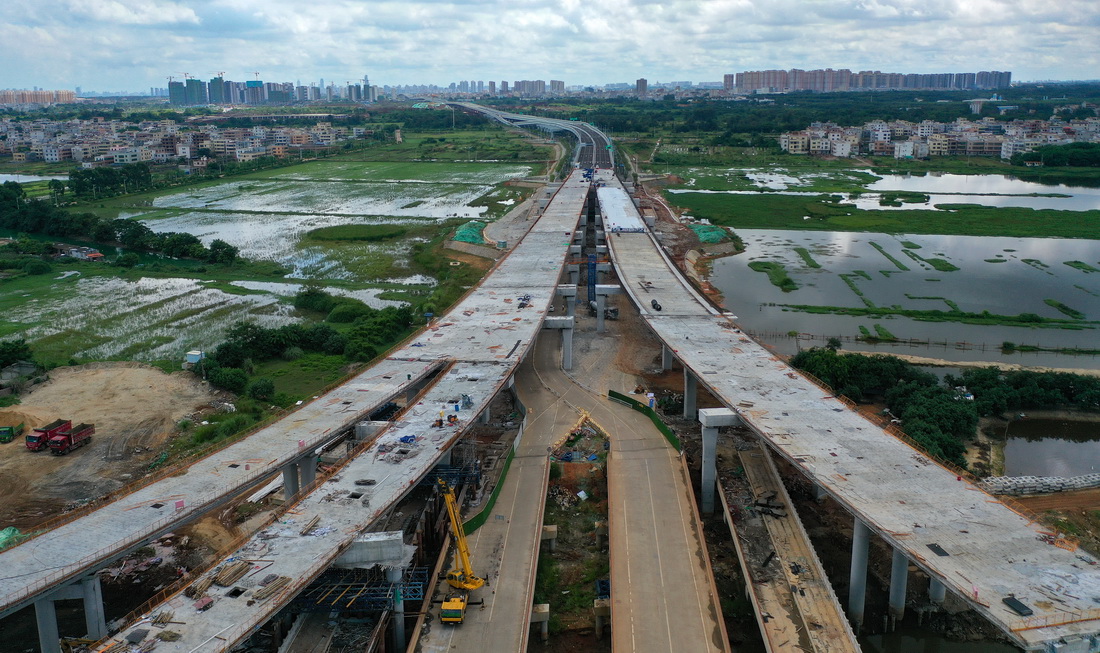 G15沈海高速公路海口段是G15沈海高速和G75兰海高速在海南的“最后一公里”,也是海南省高速公路连接全国高速公路网的唯一通道,路线全长13.727公里。目前,G15沈海高速公路海口段项目主体工程已完成60%,计划在2022年底建成通车。新华社记者 郭程 摄