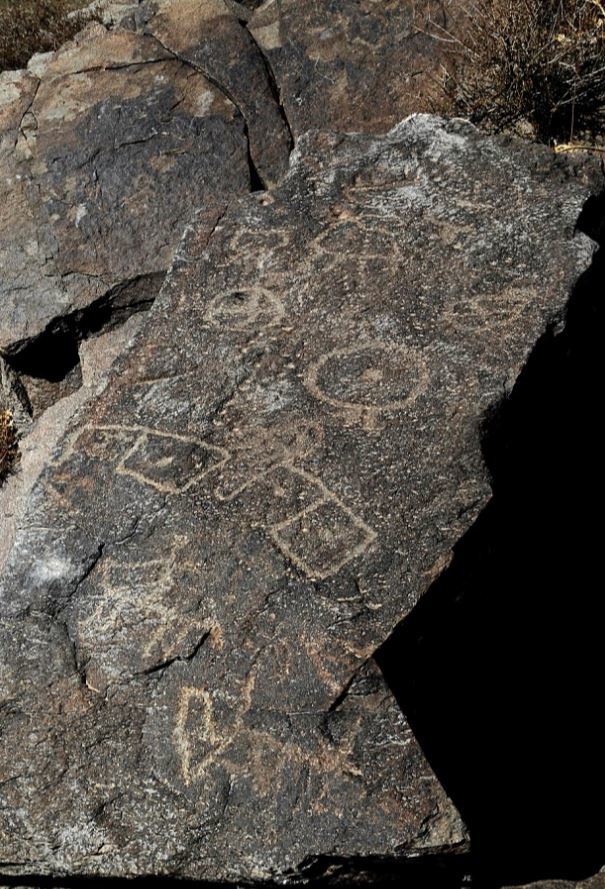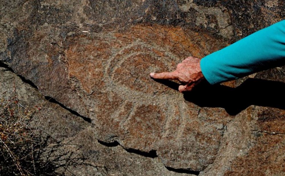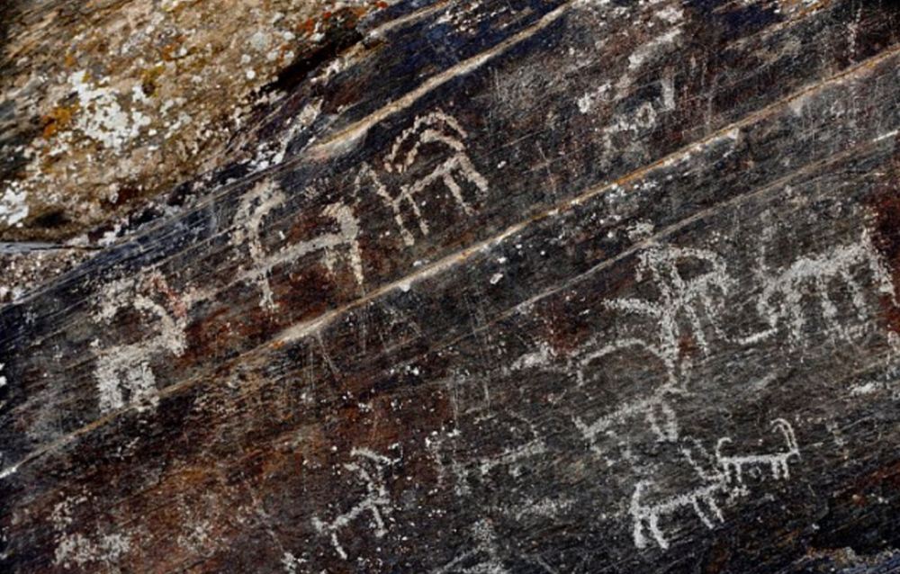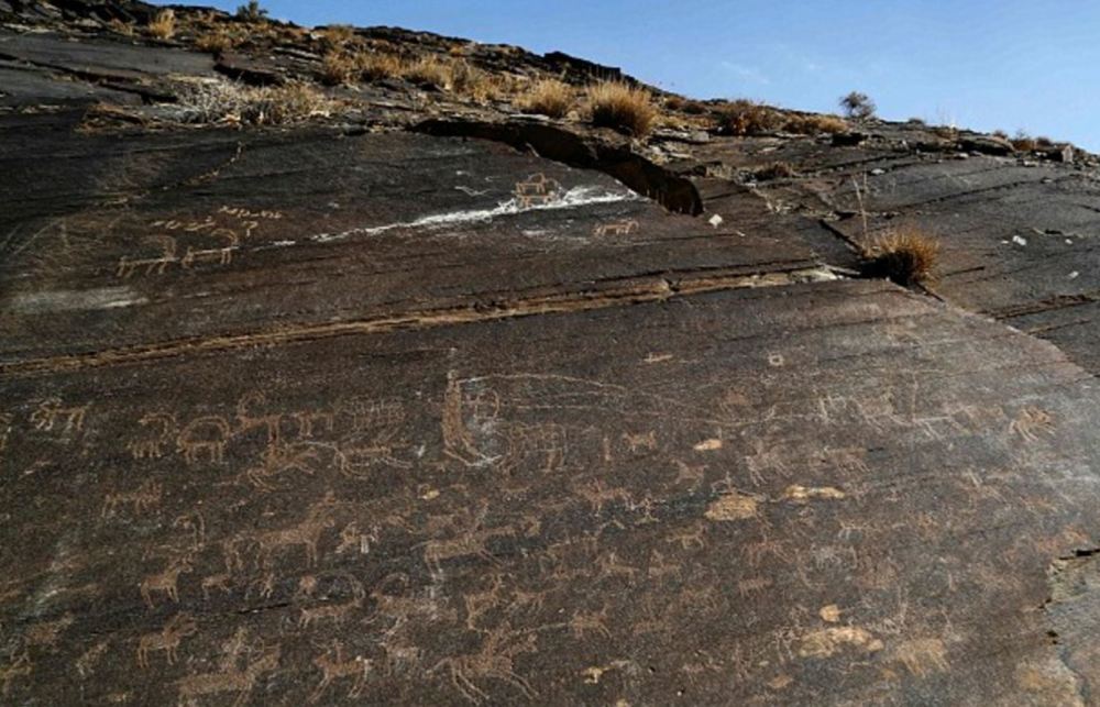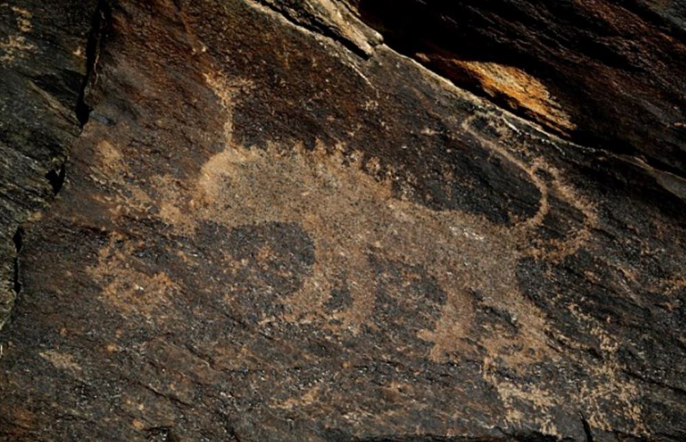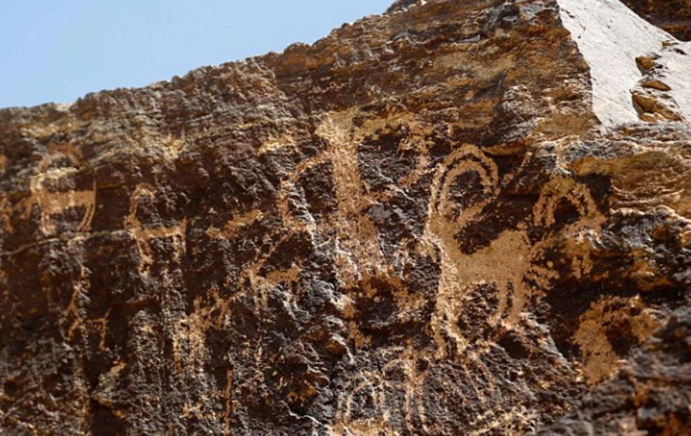 纳瑟瑞法德发现的这组岩画中描绘了远古时期的猎人、部落舞蹈、神明和野兽等事物。图为某张岩画上画着长有弯角的野山羊。
