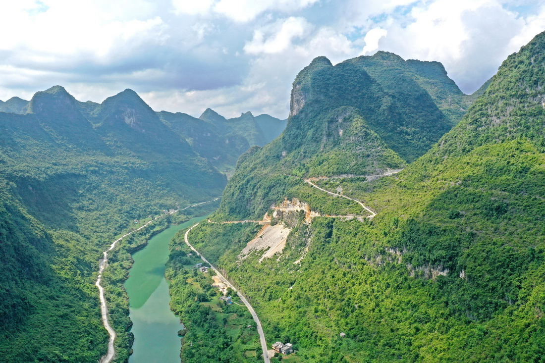 近年来,都安瑶族自治县各族党员干部群众凭着“雄心征服千层岭,壮志压倒万重山”的都安精神,不断加大交通基础设施建设,在崇山峻岭间开山凿石,建设一条又一条脱贫路、振兴路、小康路。