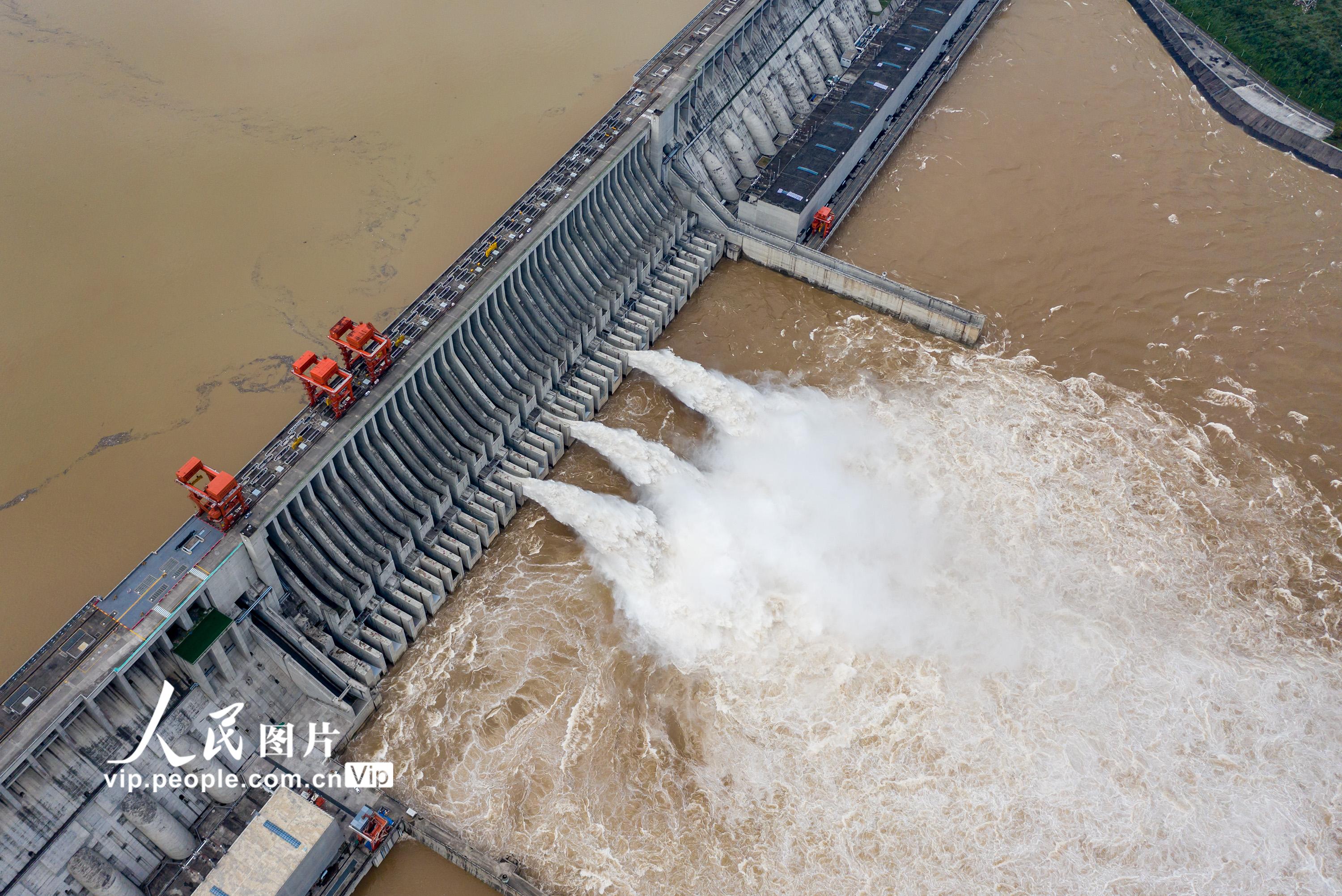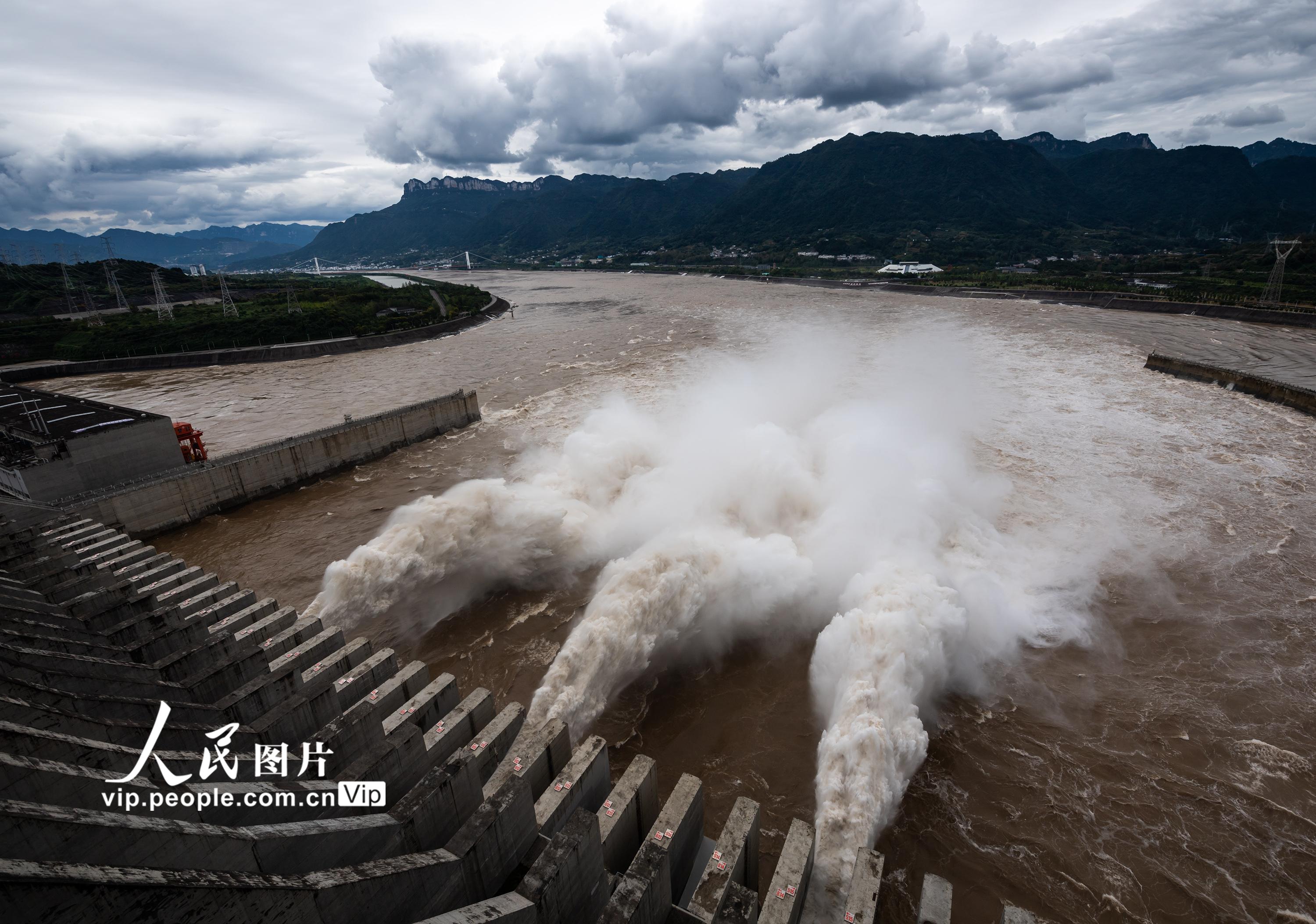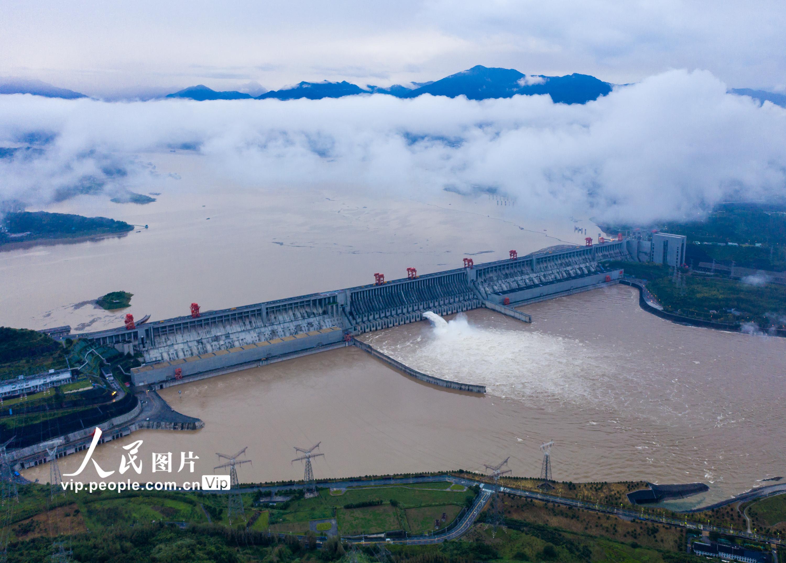 近期,受强降雨影响,长江上游岷江、沱江、嘉陵江及三峡区间来水增加。2021年9月6日14时,三峡水库入库流量达到54000立方米每秒,根据《全国主要江河洪水编号规定》,达到洪水编号标准,迎来“长江2021年第1号洪水”。郑家裕摄(人民图片网)