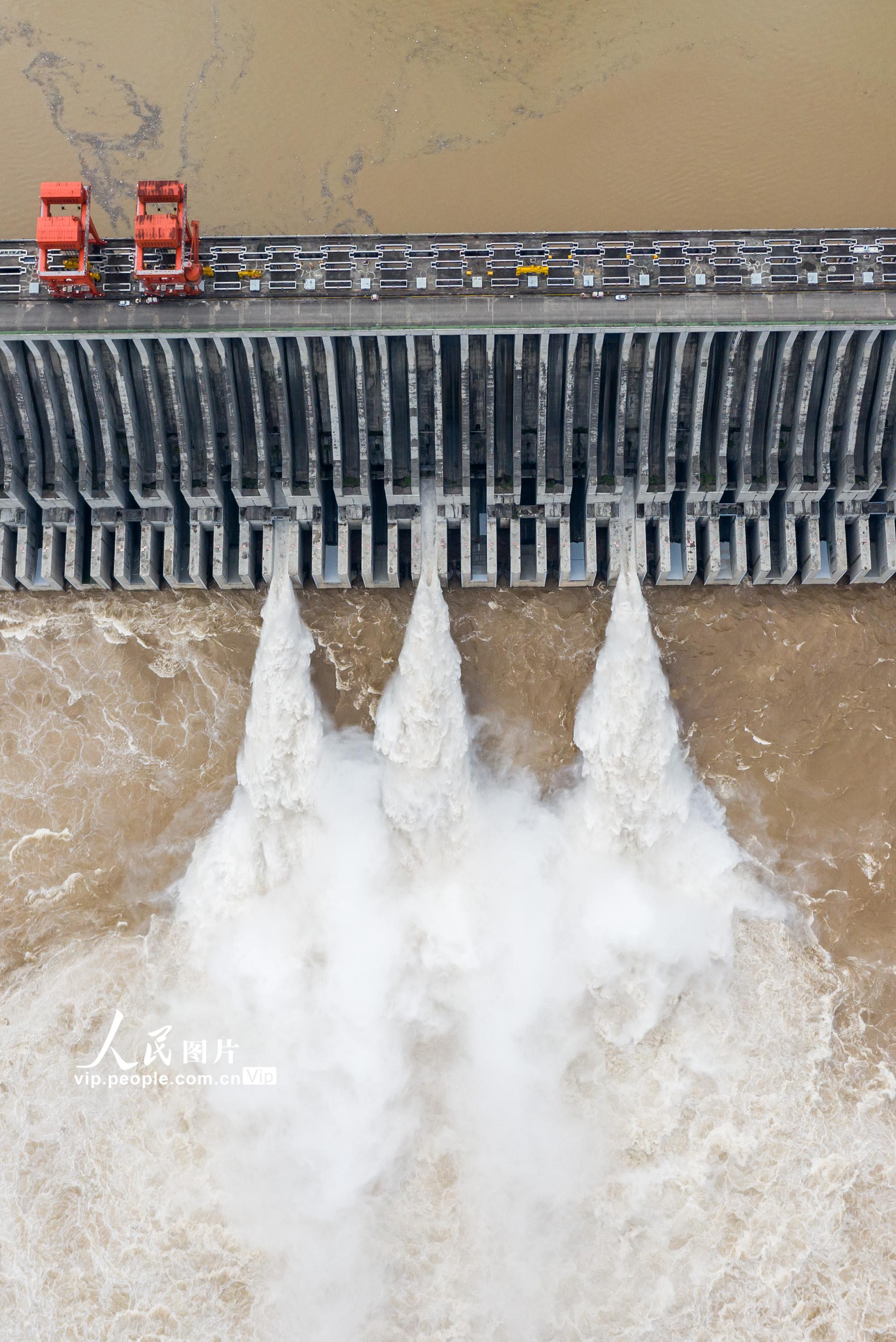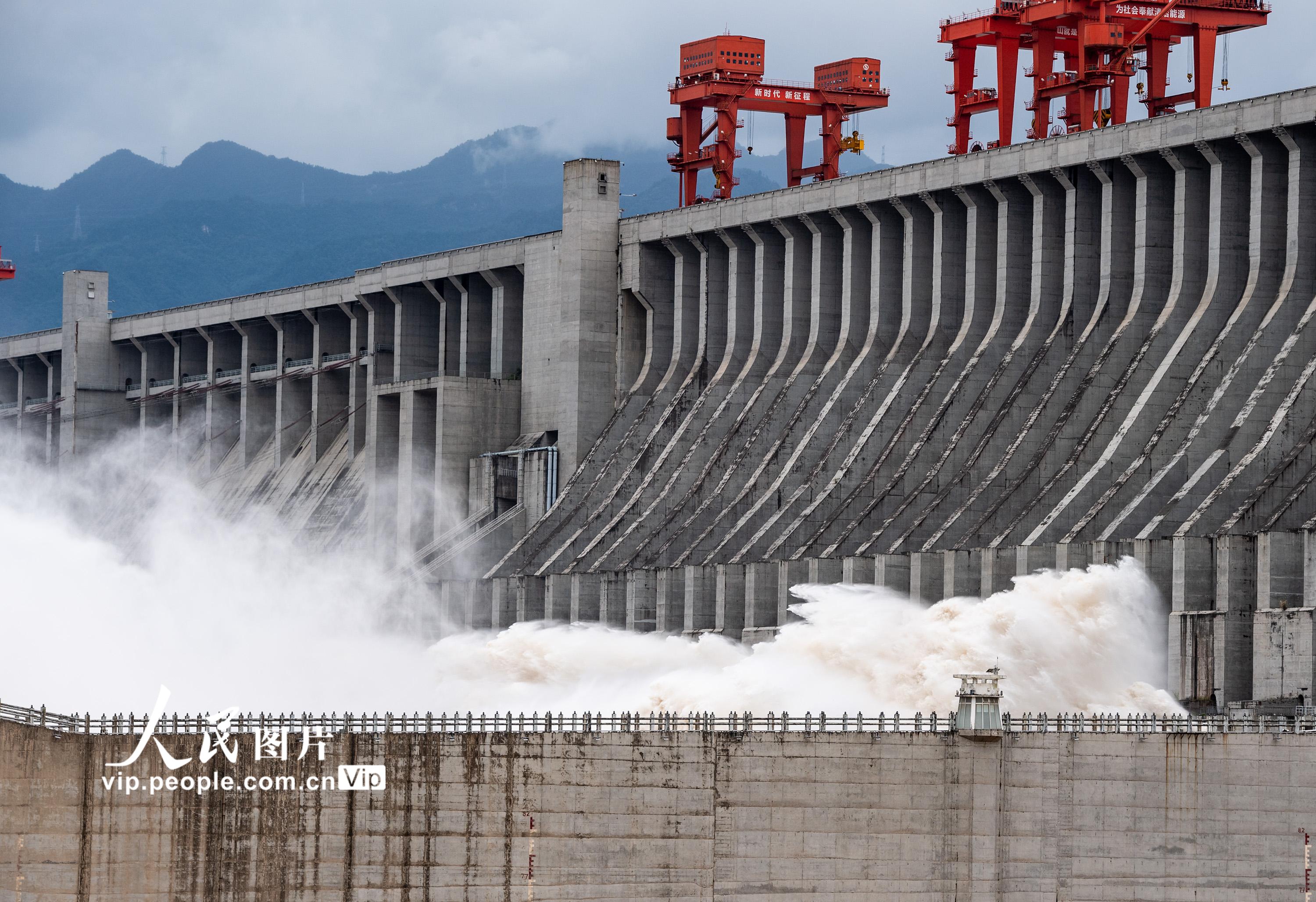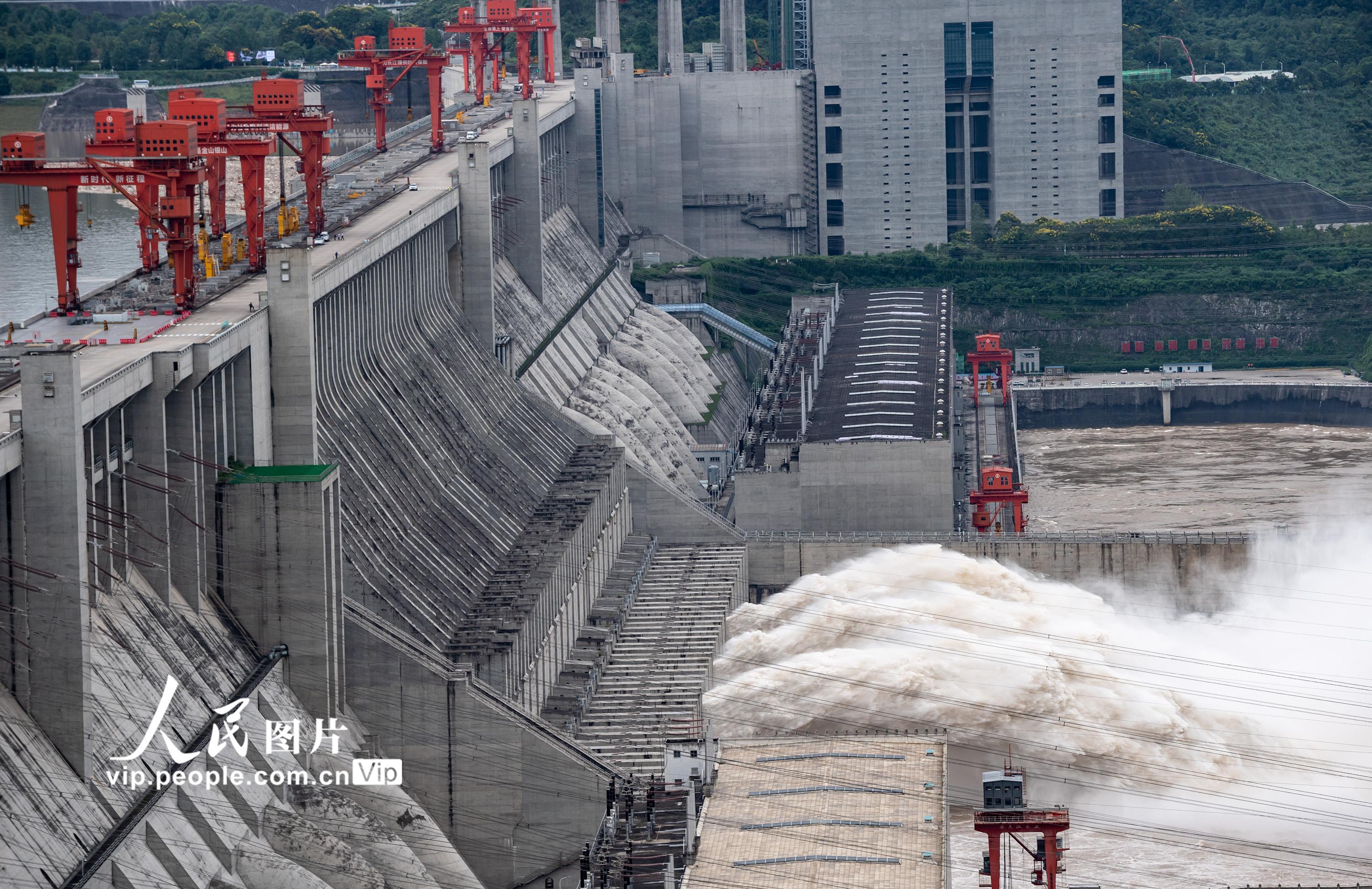 近期,受强降雨影响,长江上游岷江、沱江、嘉陵江及三峡区间来水增加。2021年9月6日14时,三峡水库入库流量达到54000立方米每秒,根据《全国主要江河洪水编号规定》,达到洪水编号标准,迎来“长江2021年第1号洪水”。郑家裕摄(人民图片网)