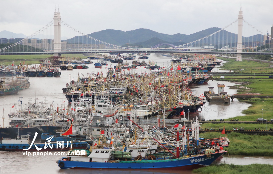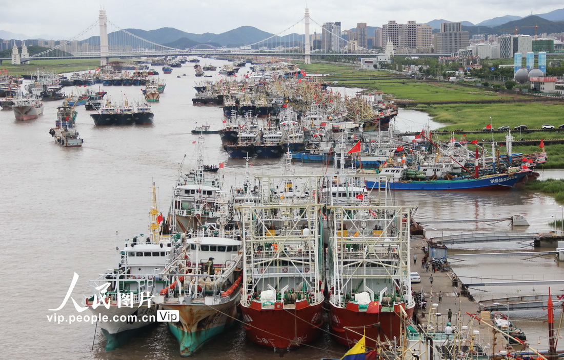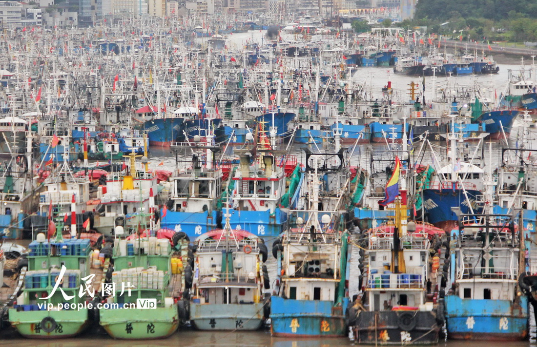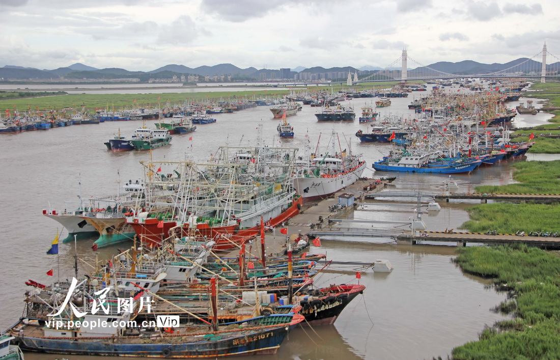 2021年9月12日,随着台风“灿都”逼近,浙江省舟山市大量渔船陆续靠港避风。陈永建摄(人民图片网)