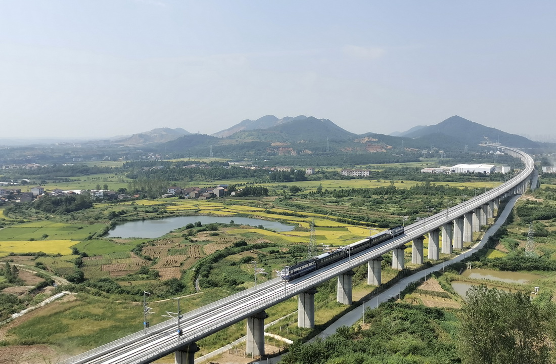 9月16日,安九高铁安庆至黄梅段开始联调联试,为全线开通运营奠定基础。安九高铁连接安徽省安庆市与江西省九江市,是国家中长期铁路网规划“八纵八横”高速铁路主要通道京港(台)通道的重要组成部分,设计时速350公里。新华社发