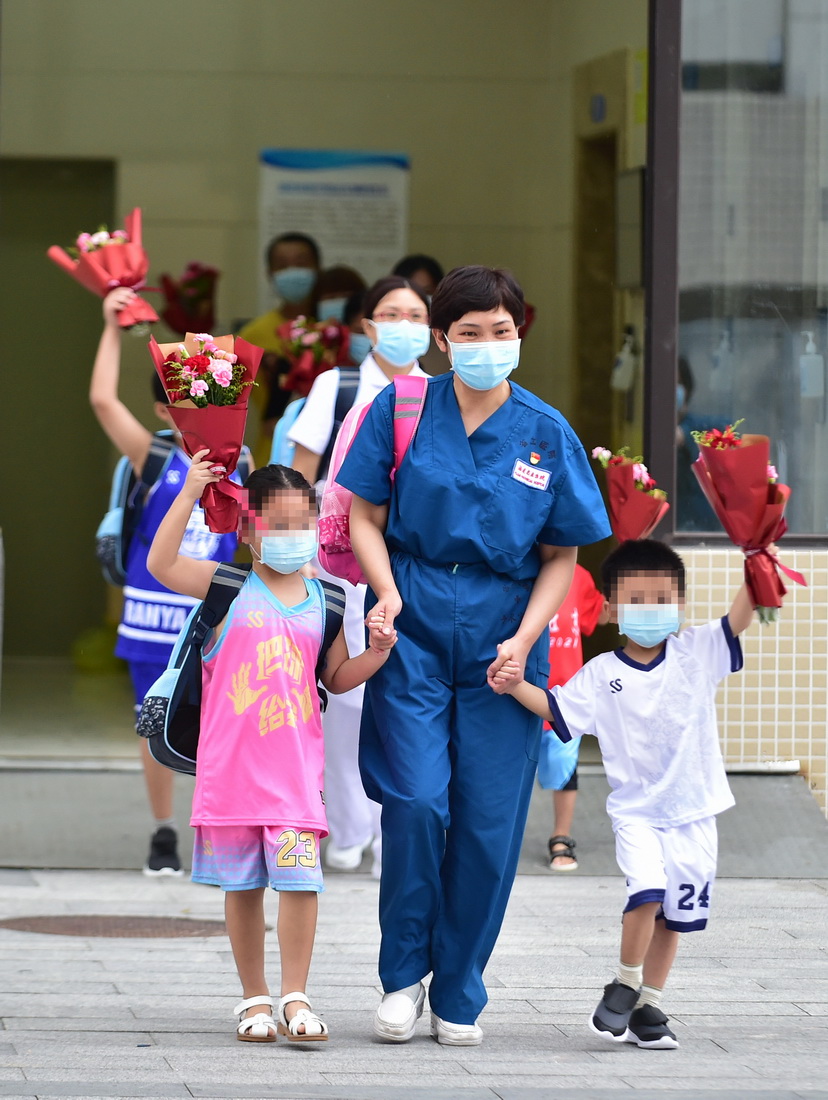 9月23日下午,包含4名儿童在内的8名新冠肺炎患者从莆田学院附属医院出院。这是福建本轮疫情以来首批出院的患者。出院后,8名患者将继续进行康复观察。新华社记者 魏培全 摄