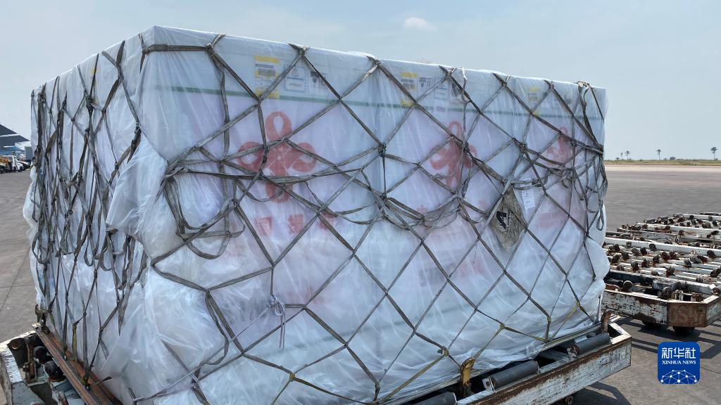 9月29日,在刚果(金)首都金沙萨恩吉利国际机场,工作人员卸载中国援助的科兴新冠疫苗。