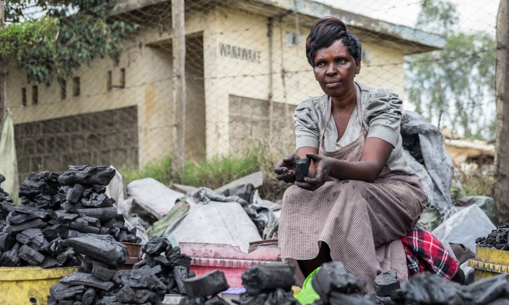 莎拉(Serah)是一位木材贸易商,她正在奈瓦沙(Naivasha)等待客户。她把残留的木炭粉尘卖给了一家名叫Sanivation的公司,这家公司用灰尘和废品制作煤块。